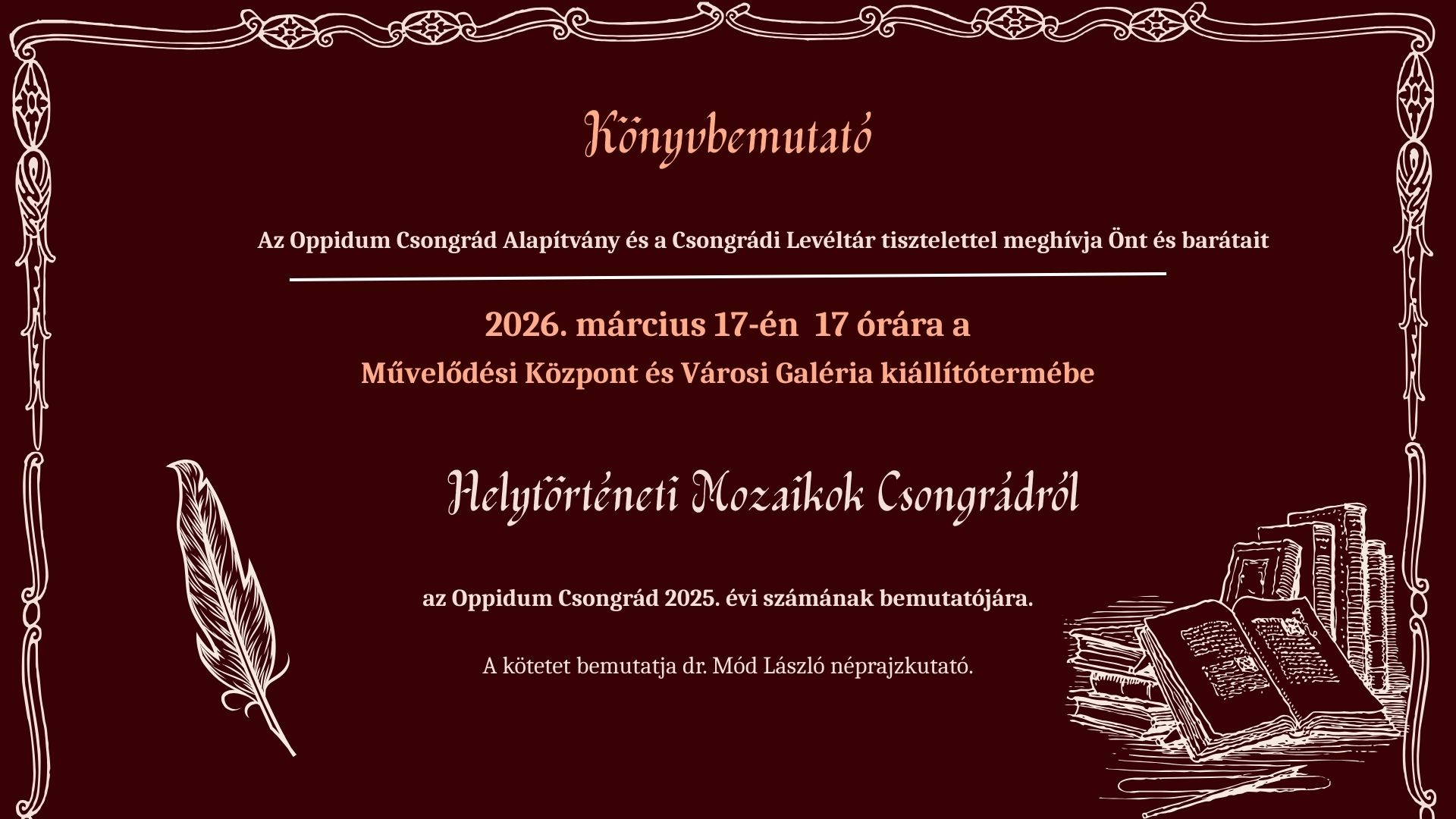 - További információ Helytörténeti mozaikok Csongrádról - könyvbemutató tartalommal kapcsolatosan
