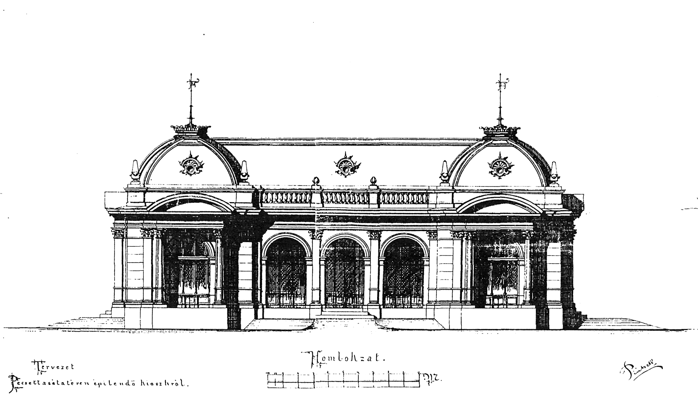 - ábra: Piátsek Gyula kioszk-terve. (1895. Nem épült meg.) Mendöl 1999. 303.