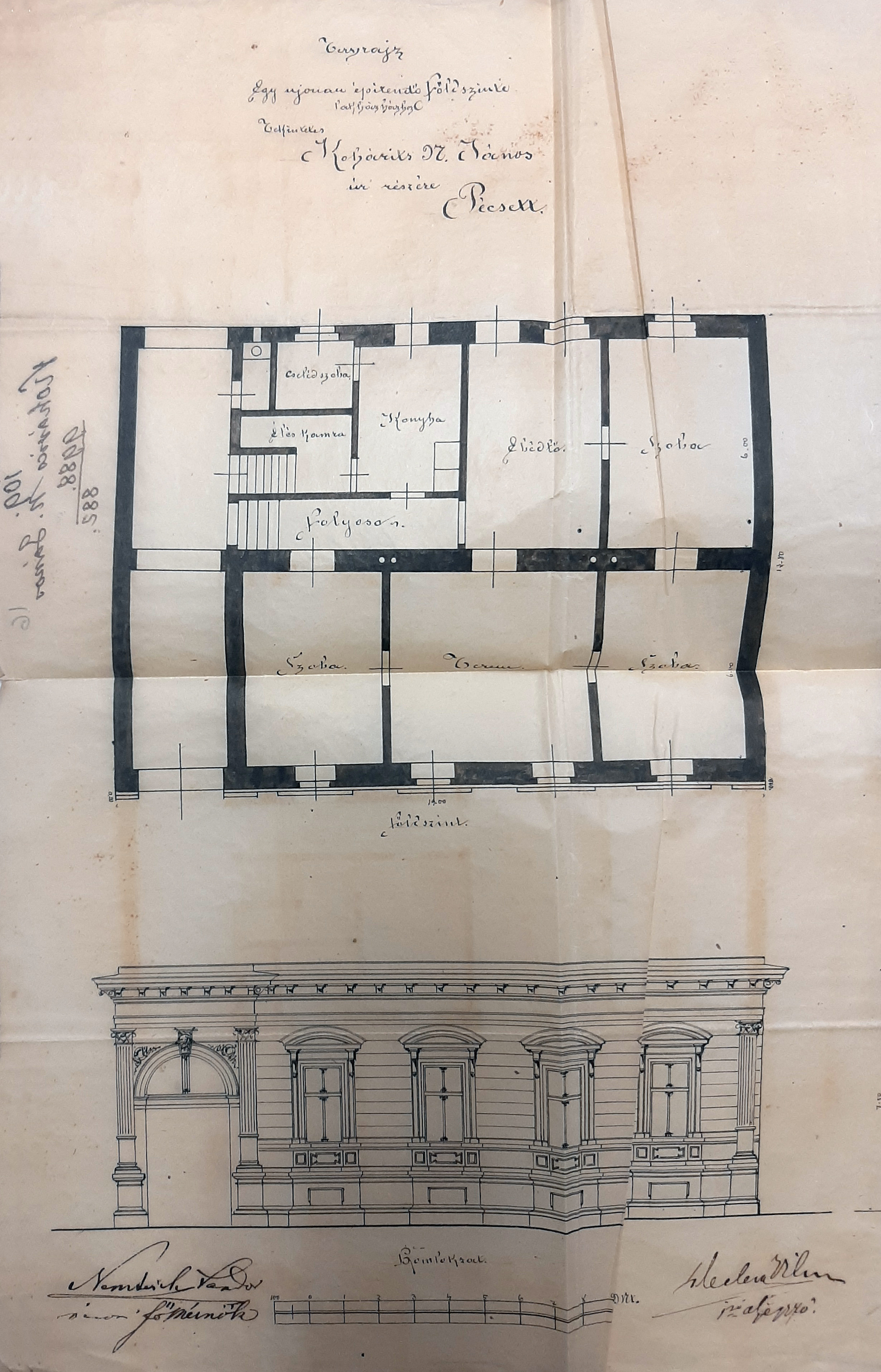 - ábra: Koharits N. János tiszti főorvos háza, Gyár utca 6. MNL BaML: IV. 1406. b. 12630/1882.