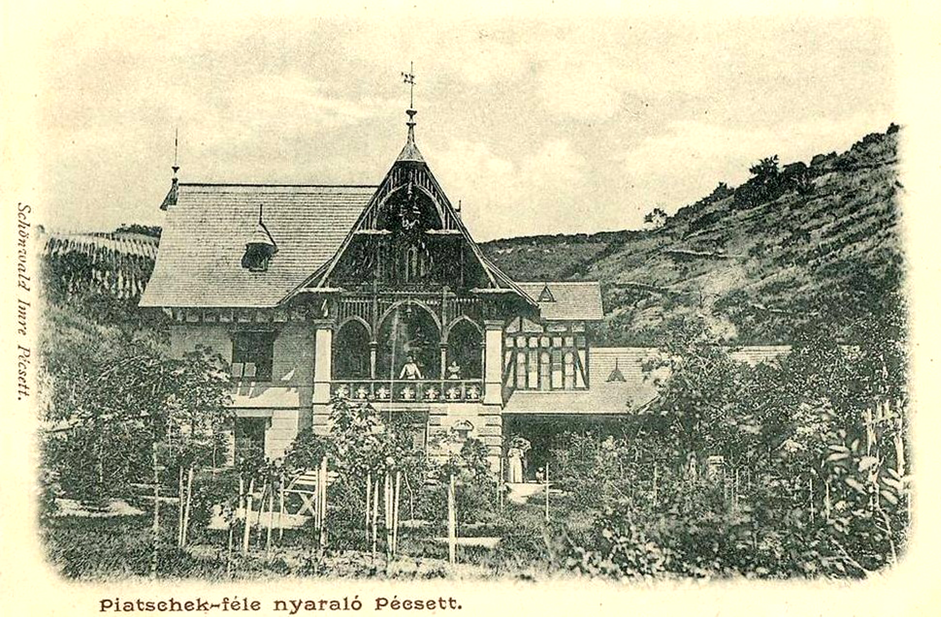 - ábra: A Piatsek-nyaraló korabeli képeslapon https://www.facebook.com/RegiPecs/posts/1461626827250138/