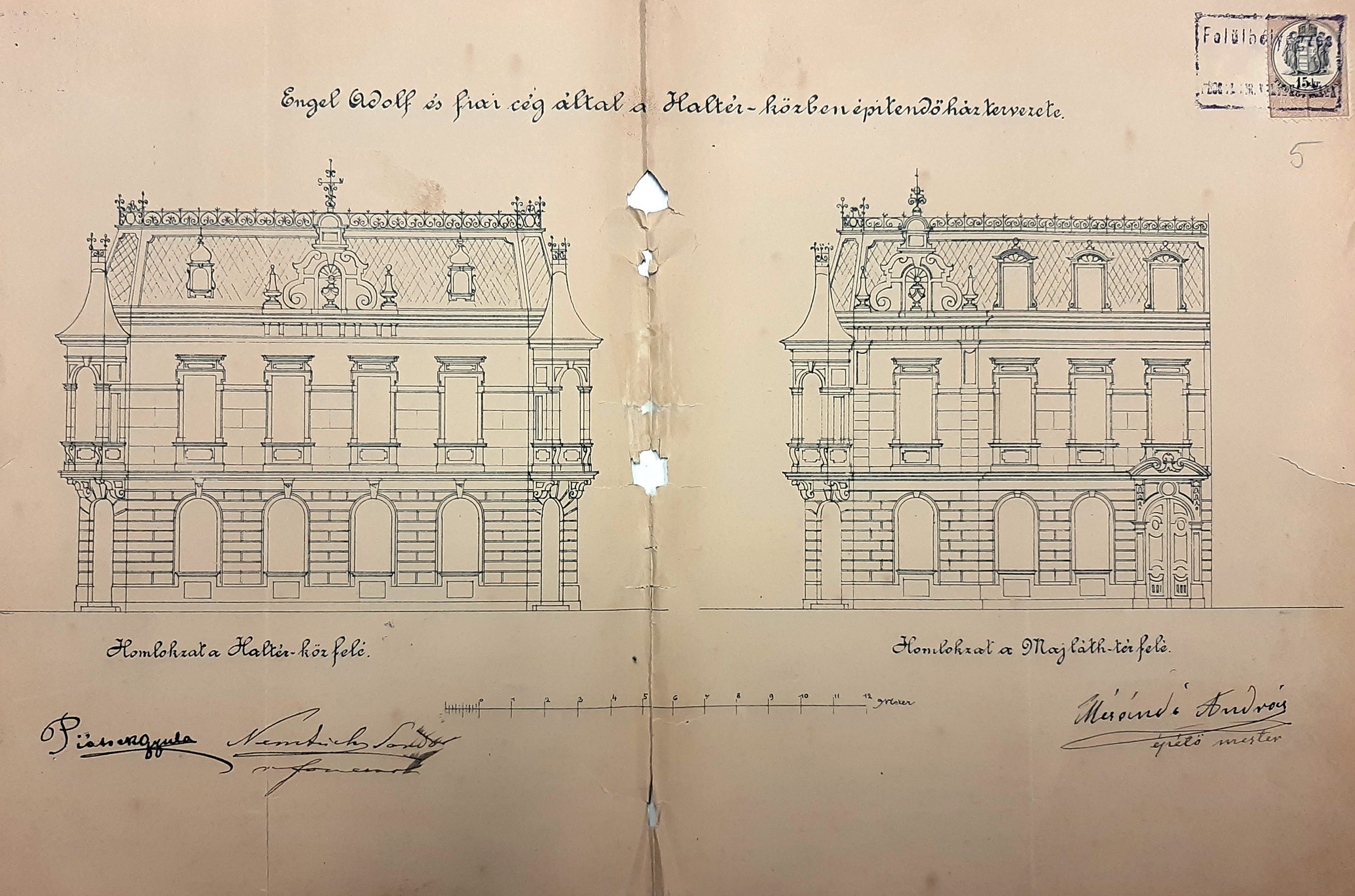 - ábra: Engel Adolf és fiai lakóháza (Hal tér 2.) MNL BaML: IV. 1406. b. 10542/1890.