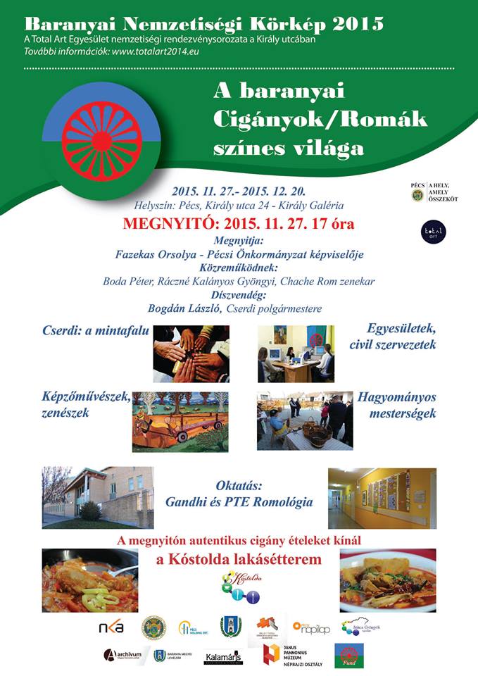„A baranyai Cigányok/Romák színes világa” című nemzetiségi kiállítás 2015.november 27. - december 20. között lesz jelen a Király Galériában.