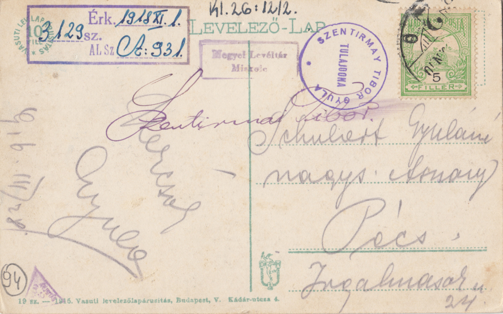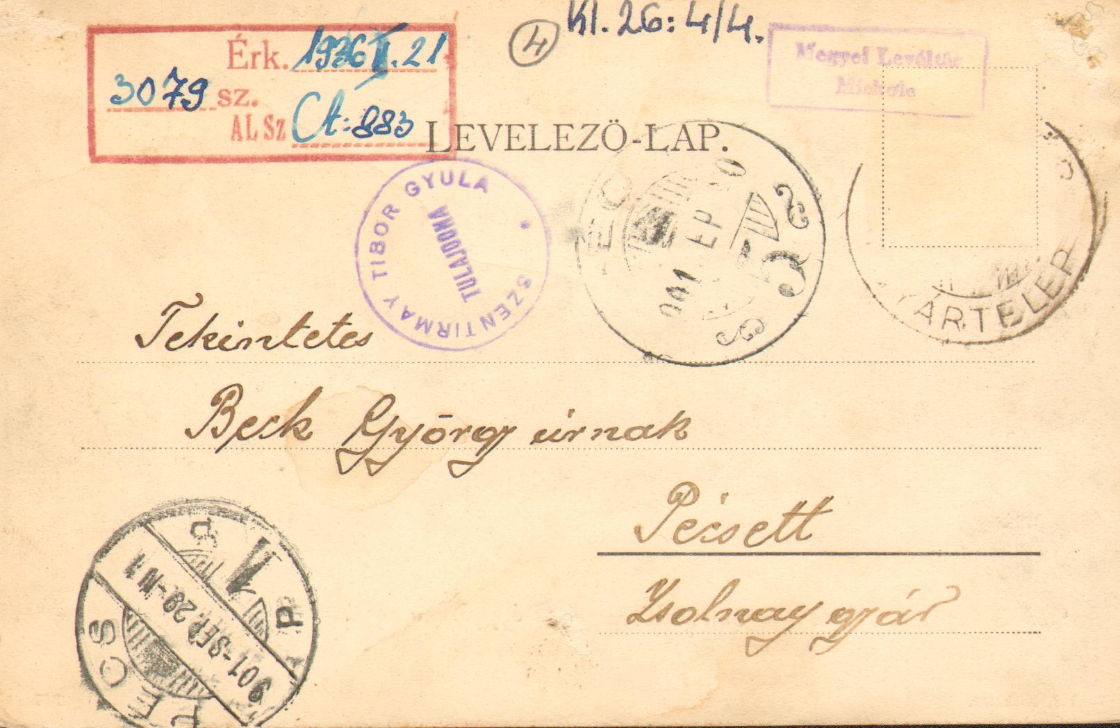 Postacím: 3980 Sátoraljaújhely, Kossuth tér 5.
