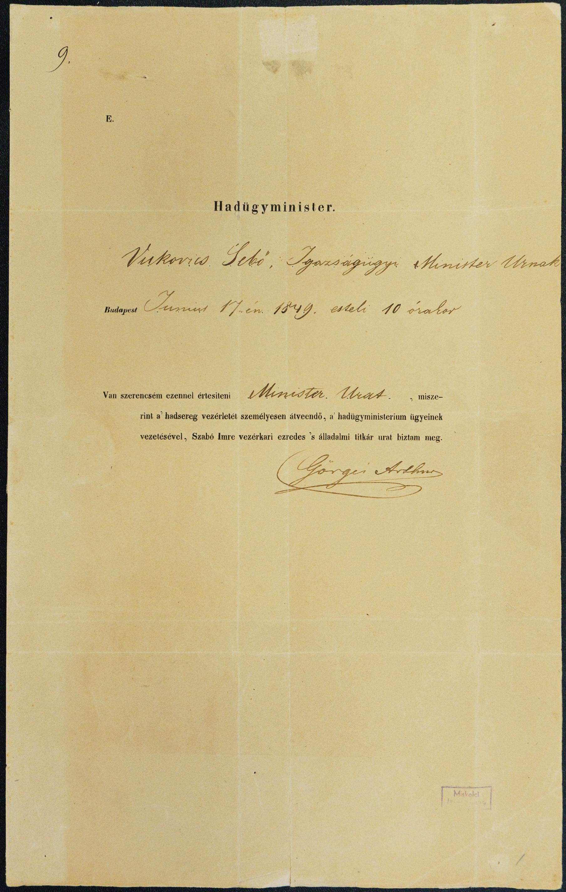 Hivatali kapu cím: