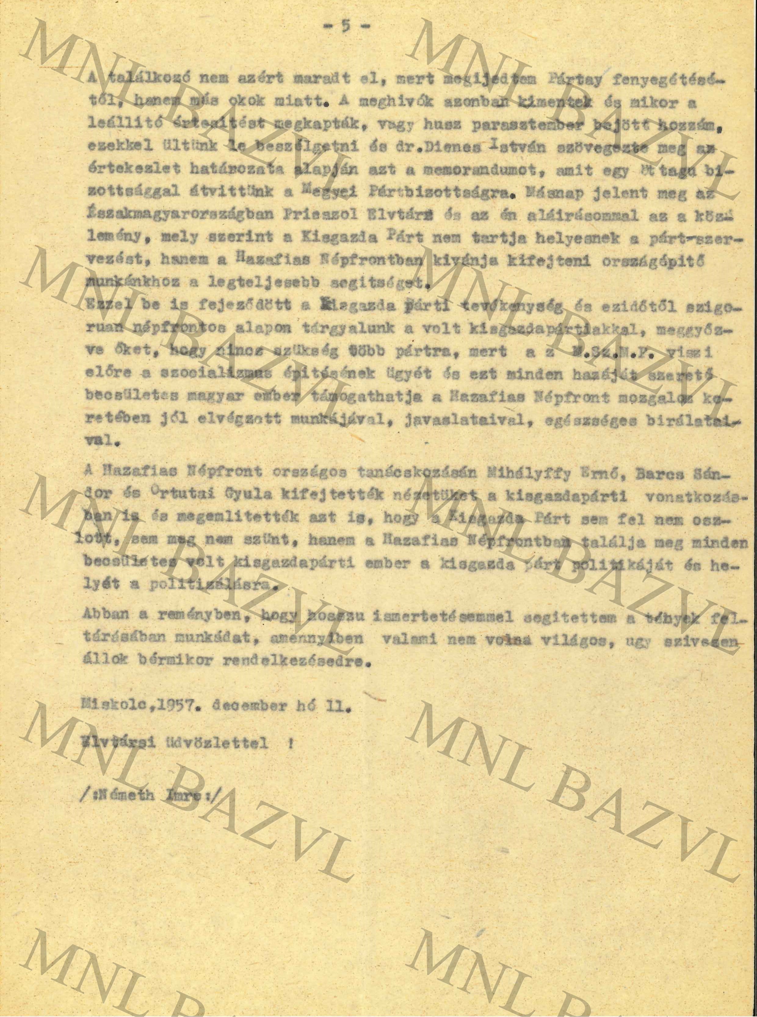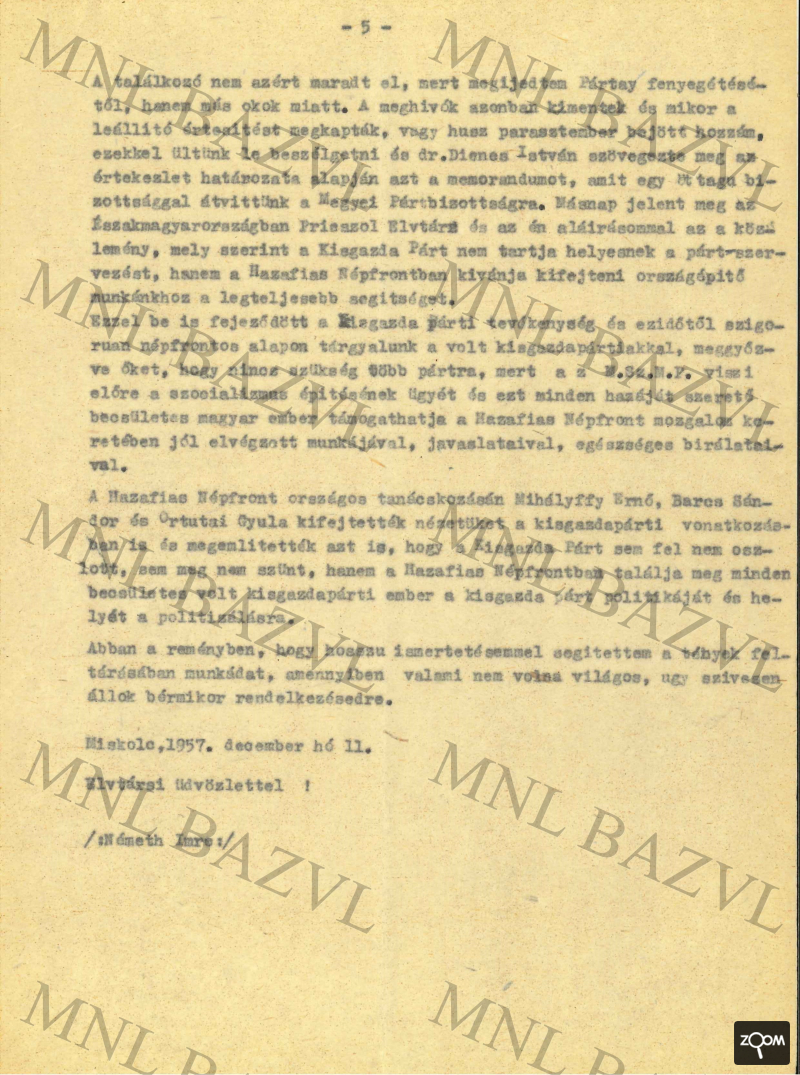 [4] HU-MNL-BAZML-XXXV.1. 2/44. ő.e. (1970) Németh Imre levele Grósz Károlynak, a megyei pártbizottság agit.-prop. osztály vezetőjének. 1957. december 11.