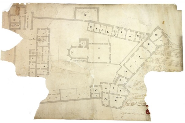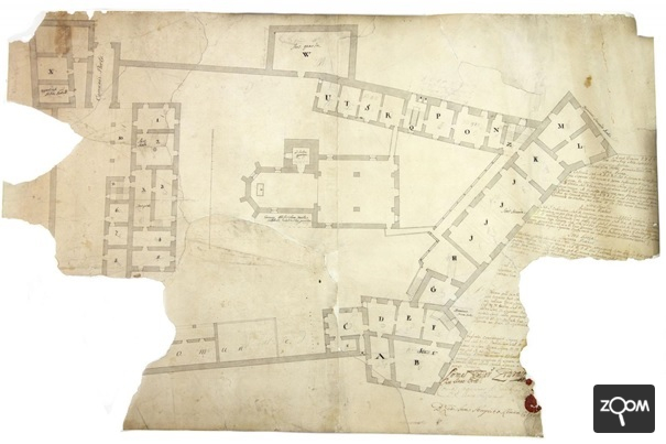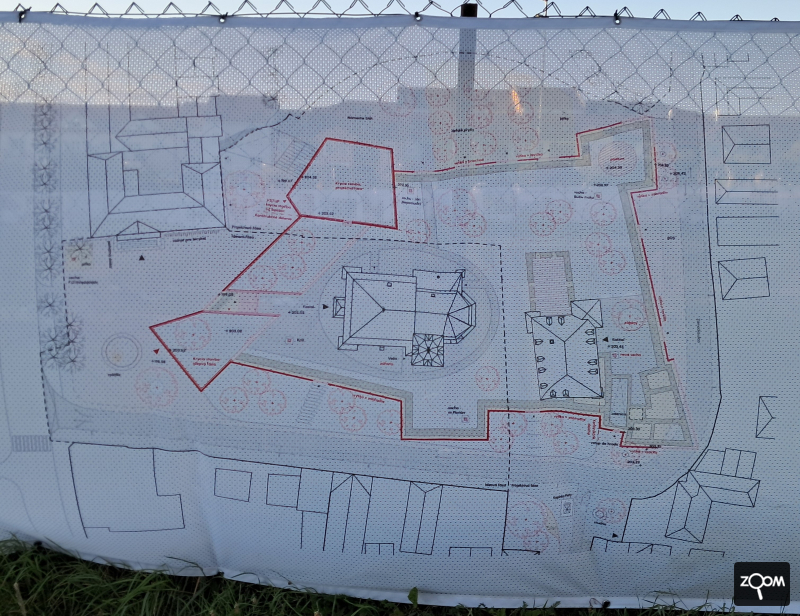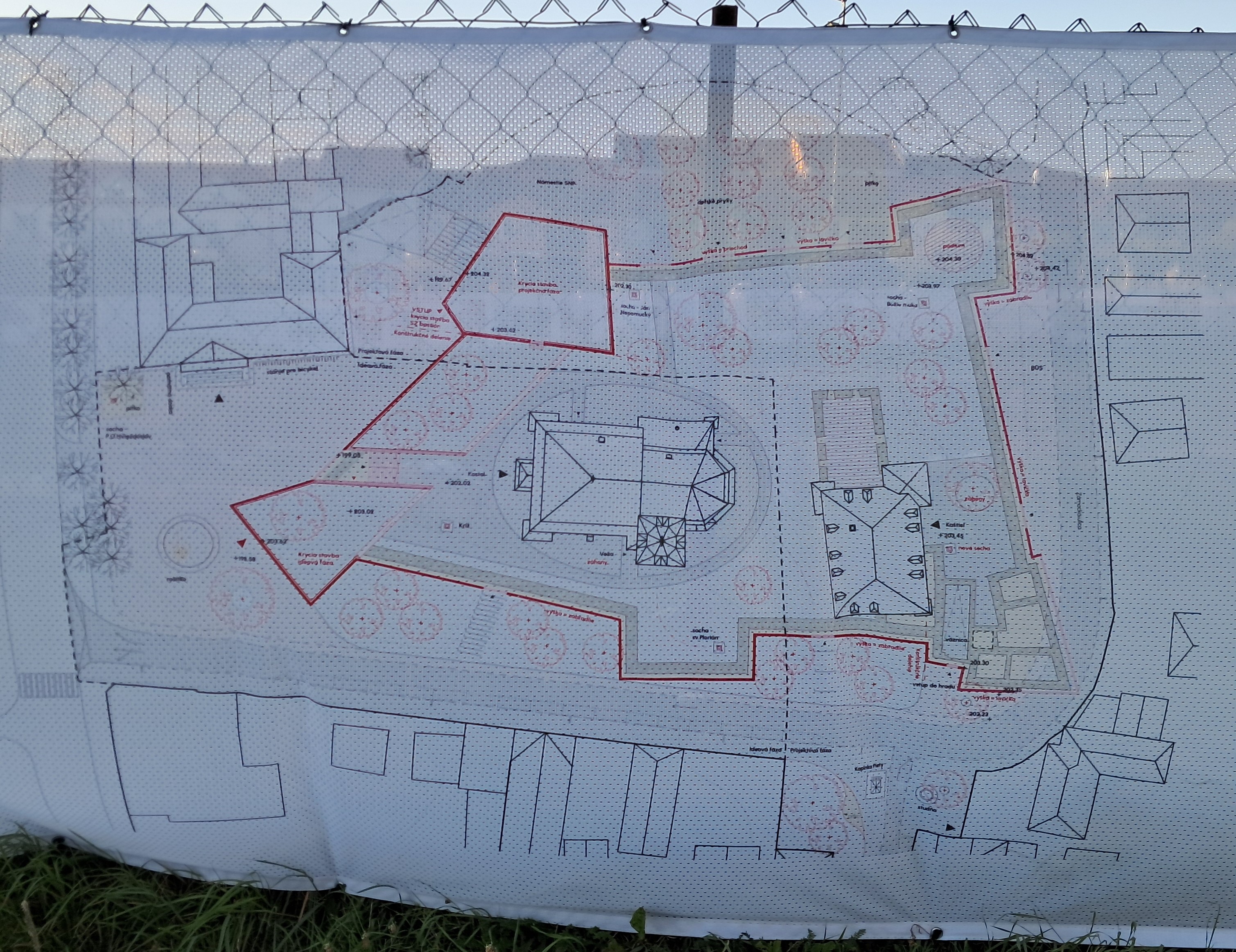 A sztropkói vár maradványainak és a környező lakónegyedeknek a térképe a régészeti terület térképén 2025-ben.