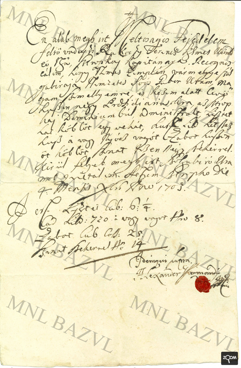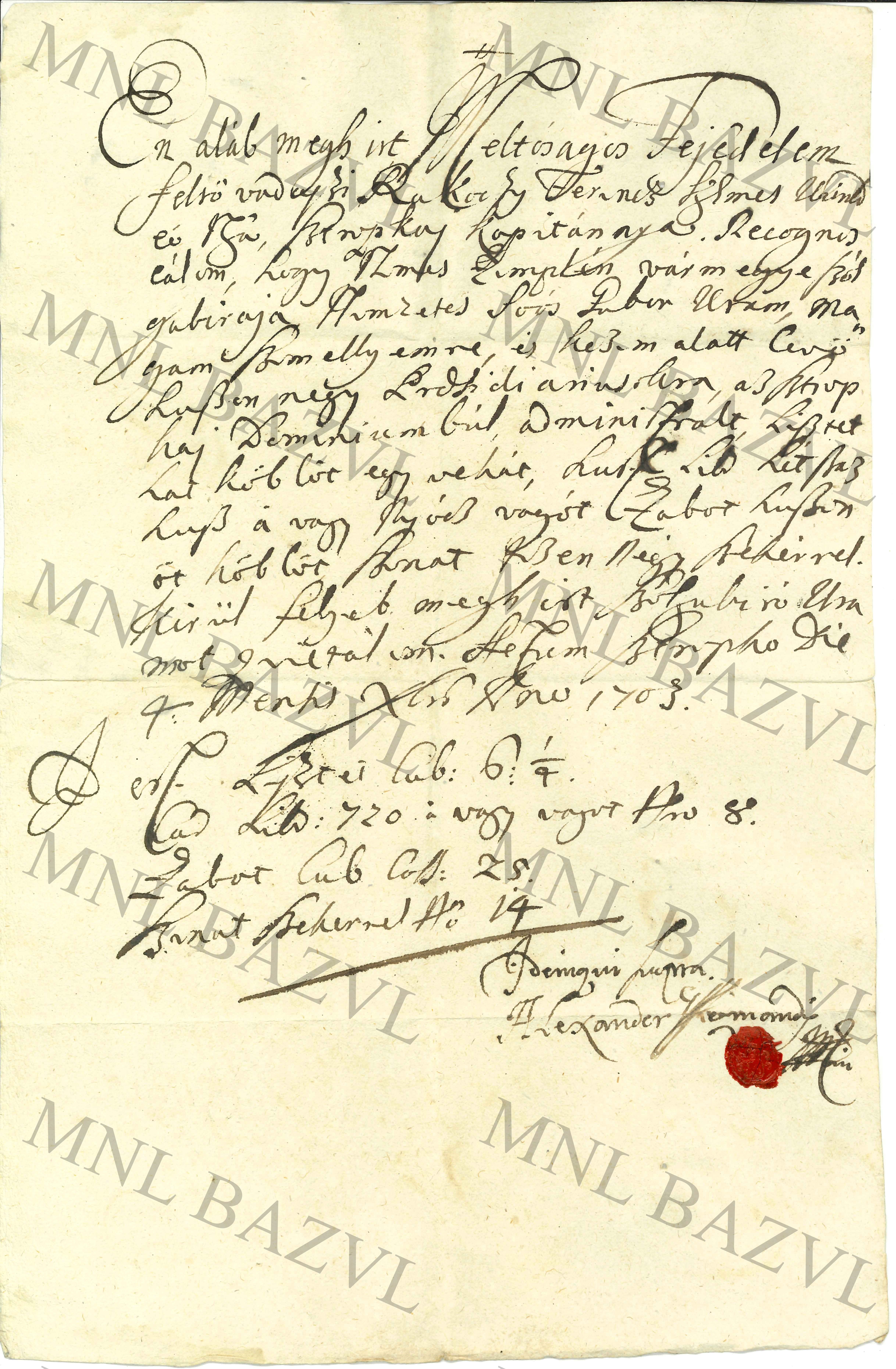 „Anno 1703. Csabala György Bíróságában költött az Város e szerint: ...