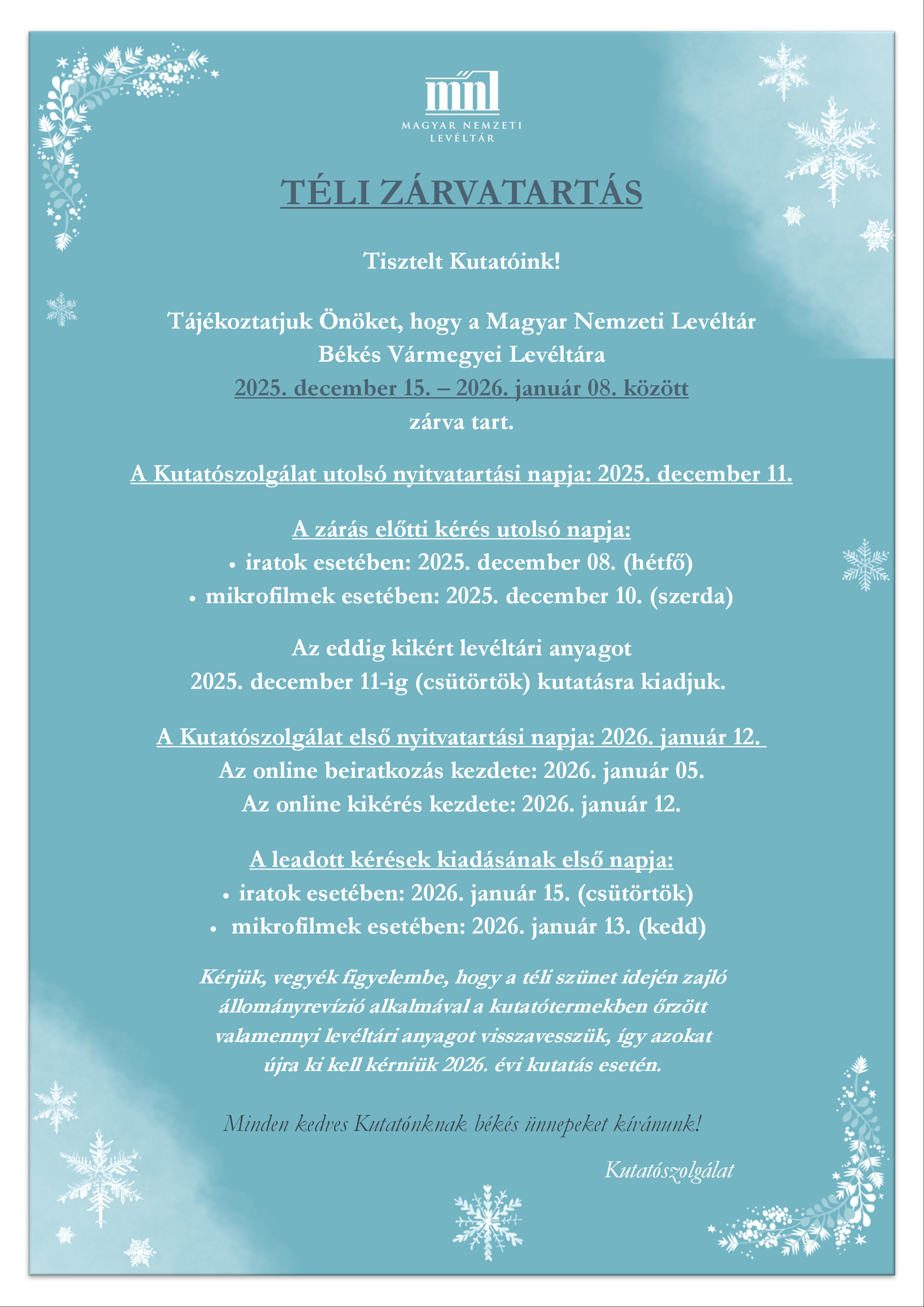 Téli zárvatartás