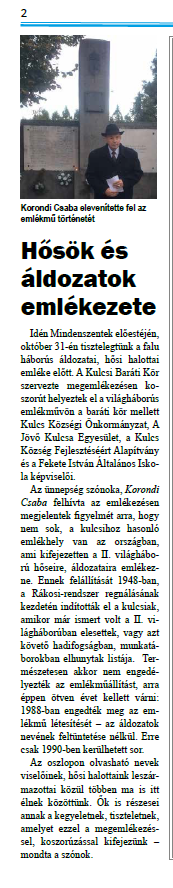 [4] Kulcsi Krónika. Kulcsi Községi Önkormányzat Kiadványa. 2017. november 2.p.