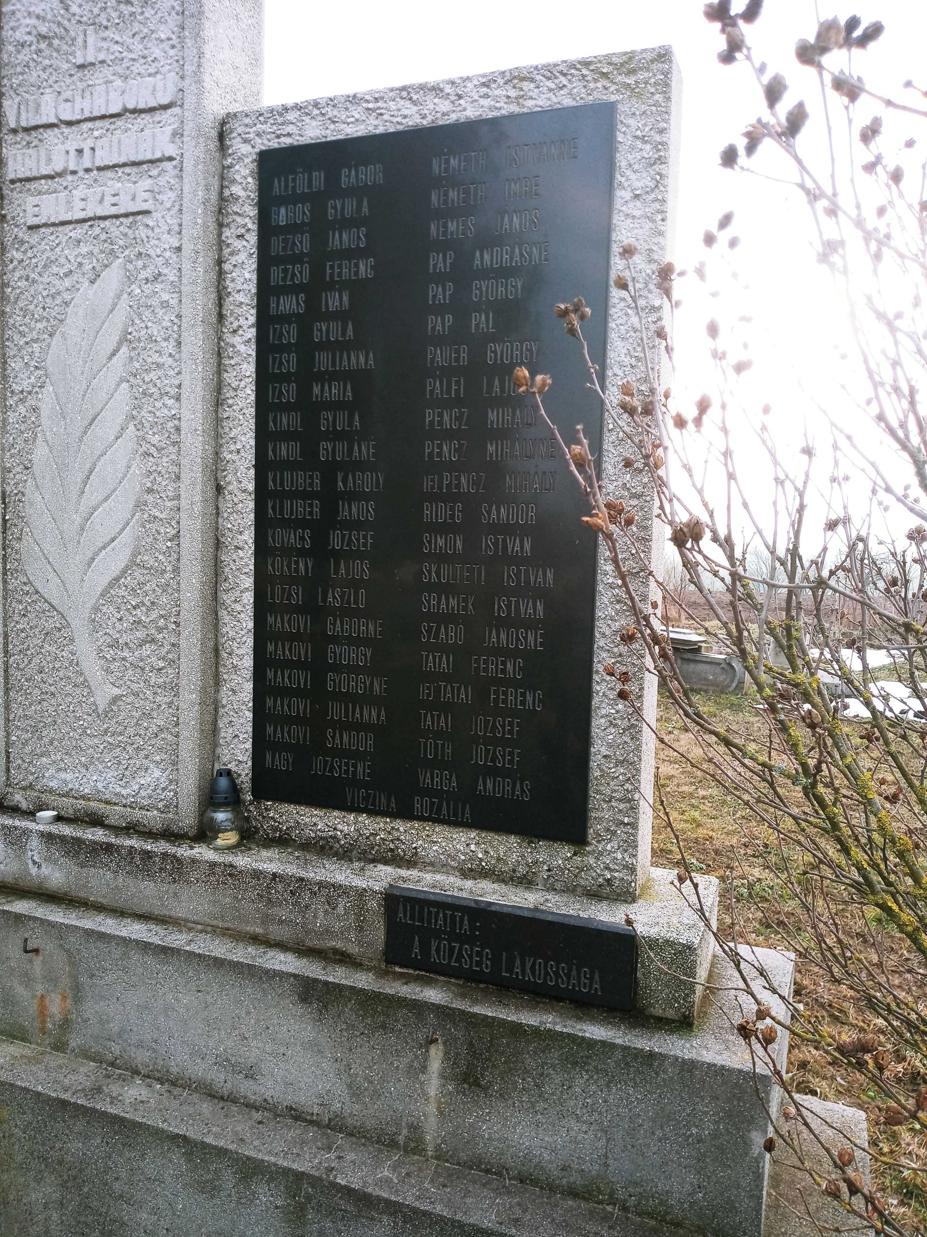Polgár Péter Antal helytörténész kezdeményezésére emlékkövet állítottak a település temetőjében exhumált magyar katonák emlékére. Helyi összefogással, alig néhány hét alatt készült el az emlékmű, amit a hősök napi megemlékezésen, 2022. május 29-én avattak fel.[2]