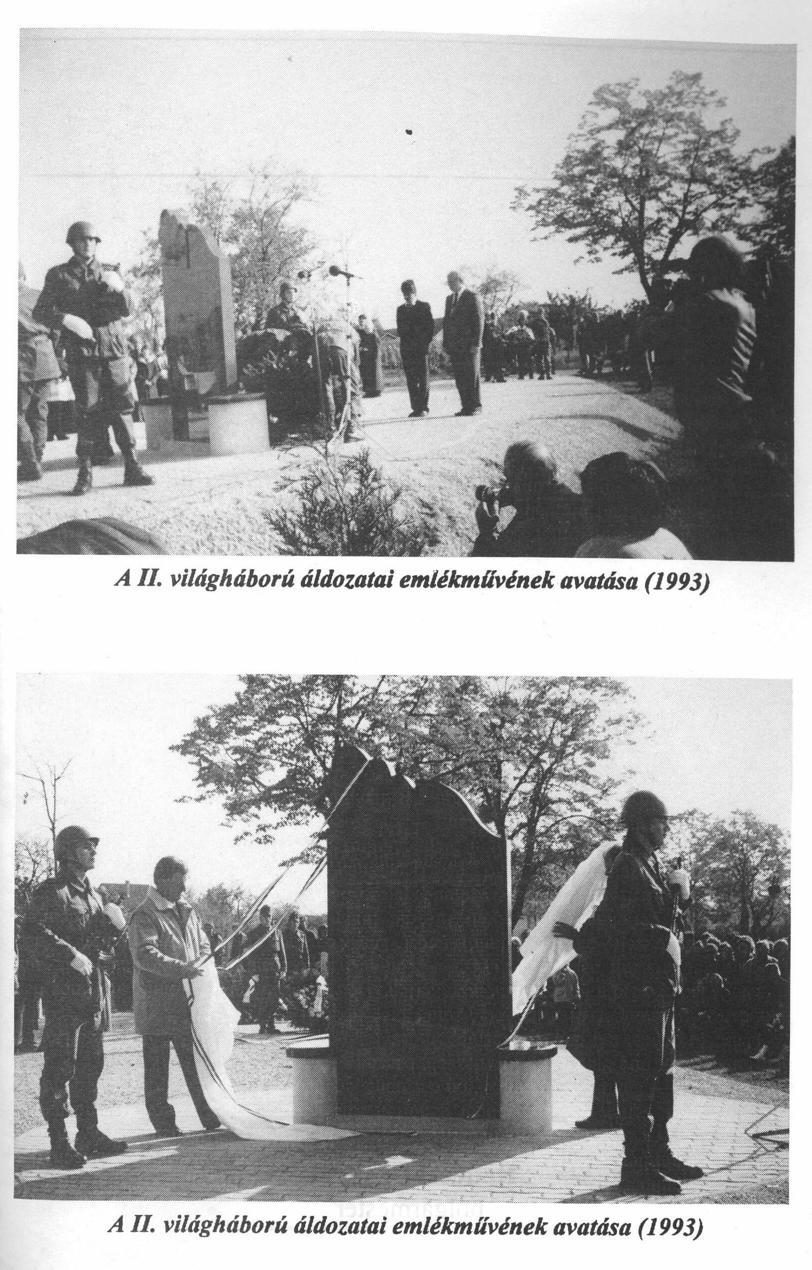 A képviselő-testület az 1992. februári ülésén úgy döntött, hogy a II. világháború áldozatai emlékére emlékművet kíván állítani, ehhez azonban kérték az áldozatok hozzátartozóit, hogy az emlékmű helyének kijelölésében legyenek segítségükre, nyilvánítsanak véleményt. Öt lehetőségre tettek javaslatot: