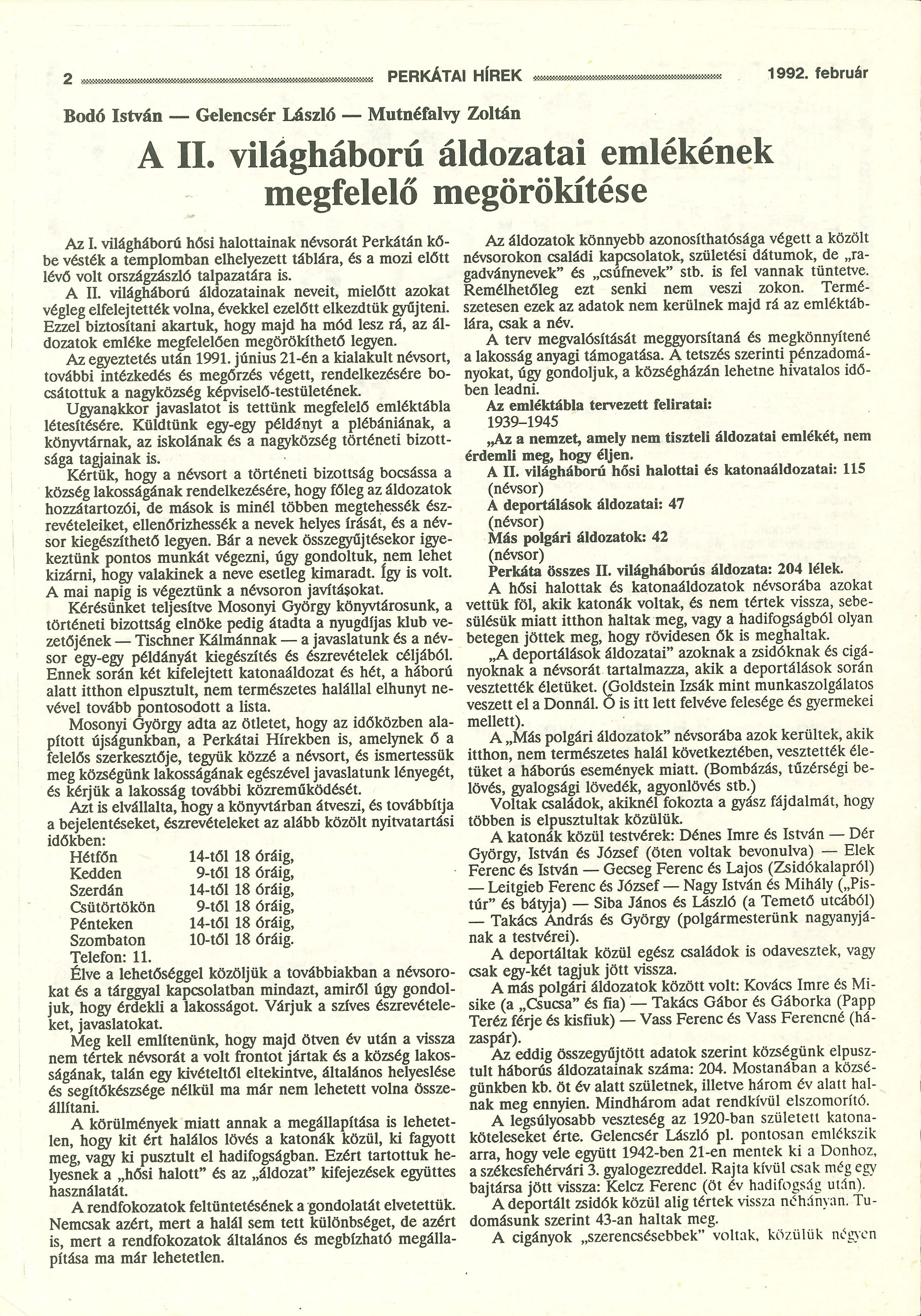 [1] Perkátai Hírek 1992. február. 2. p.