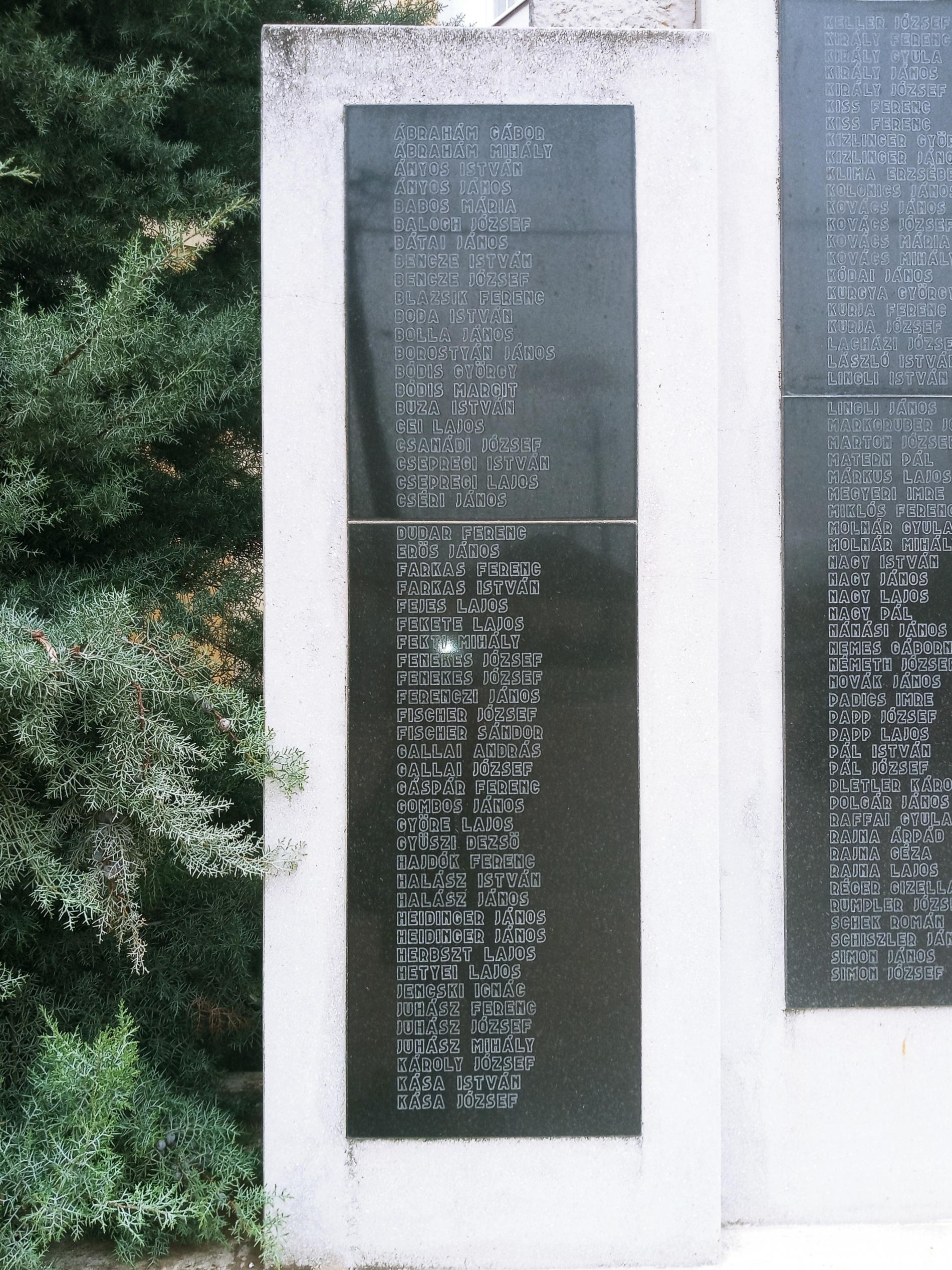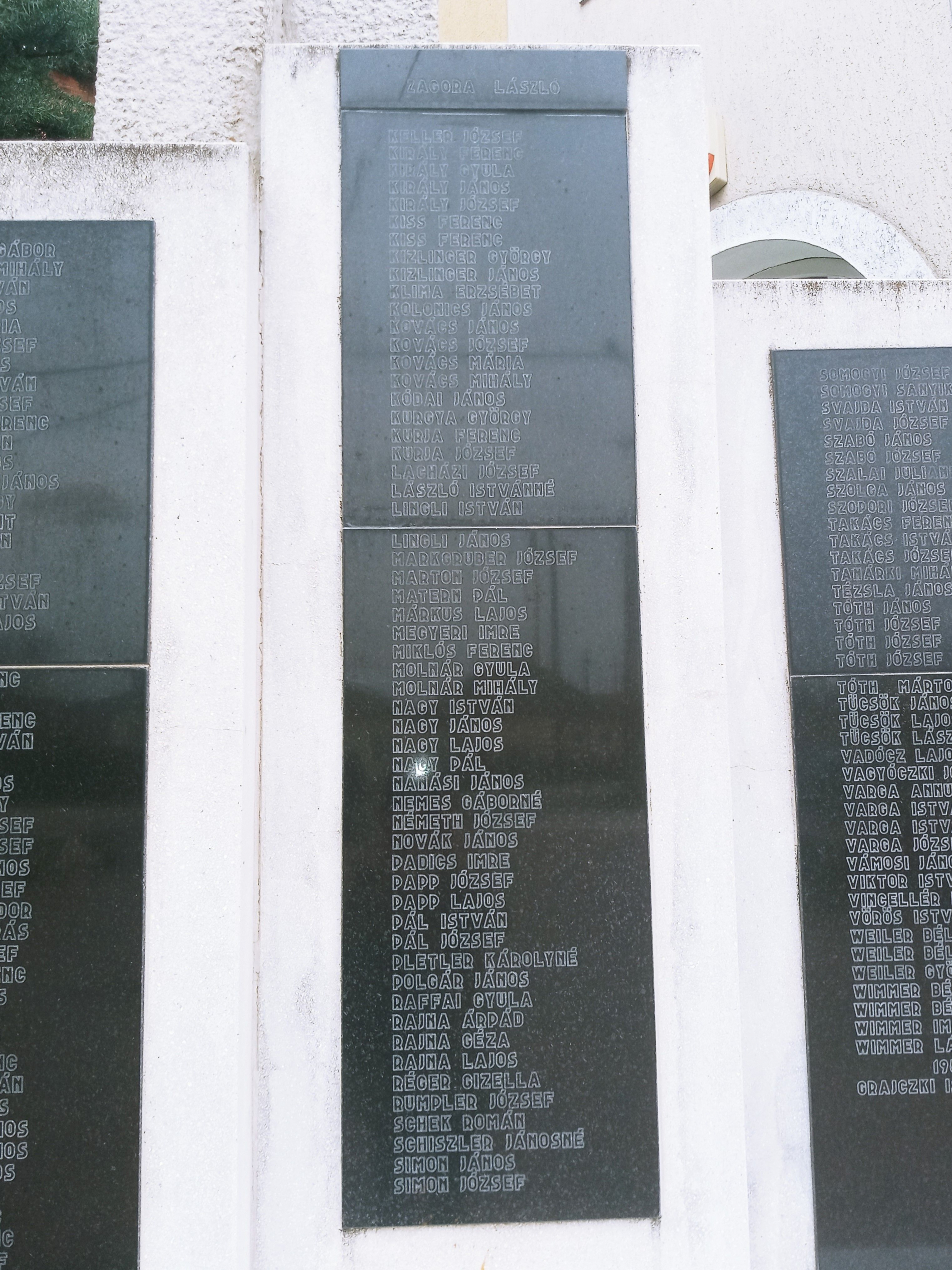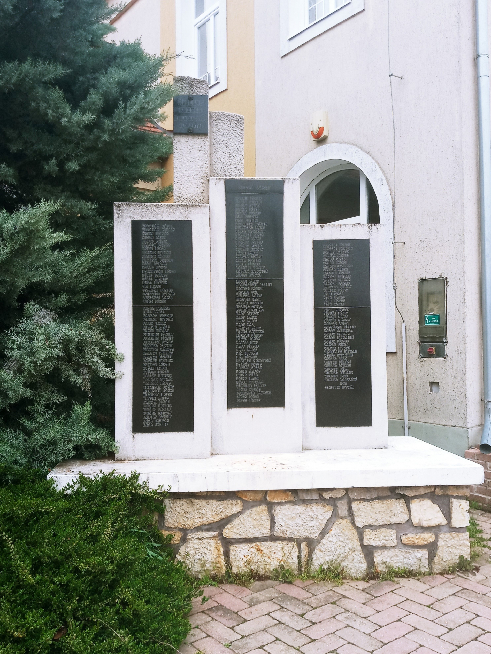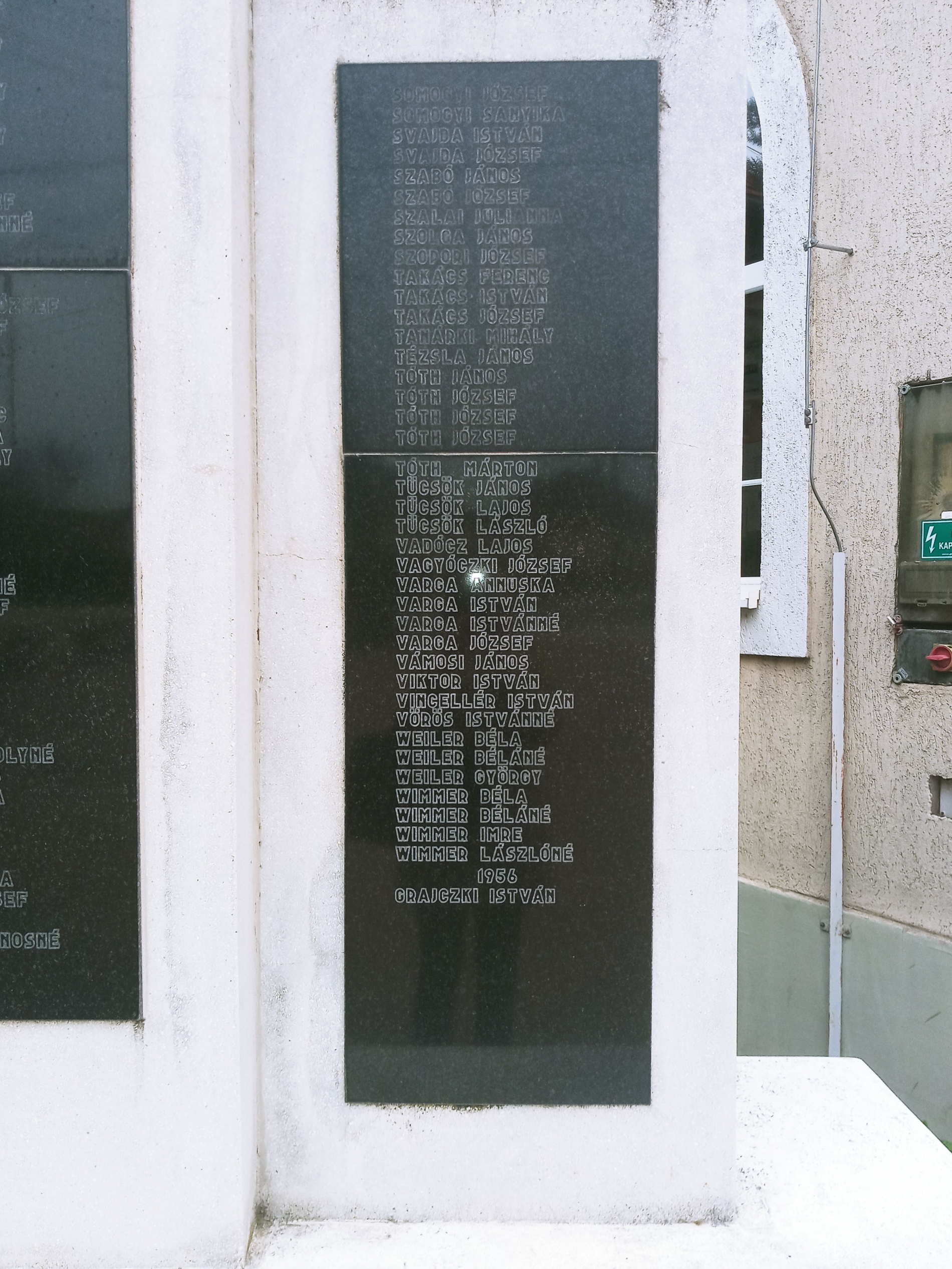 A II. világháborúban elesettek emlékére felállított emlékmű avatása 1990. október 30-án zajlott. Sajnos két személy neve adminisztrációs hiba miatt akkor nem került fel az emlékműre, amelynek pótlásáról azonban intézkedtek.[9]