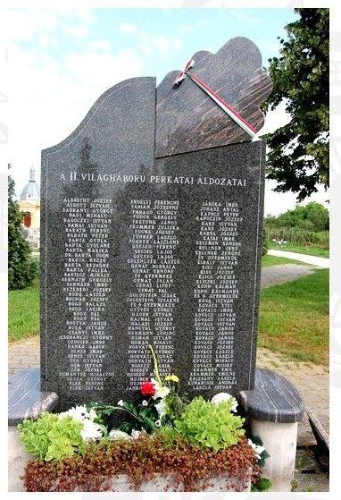 A II. világháború perkátai áldozatai tiszteletére emelt emlékmű avatási ünnepségét 1993. október 30-án tartották. Az emlékművet Dr. Erdős Ferenc, a Fejér Megyei Levéltár igazgatója leplezte le. Az ünnepségen részt vett még az Egyházmegyei Hatóság képviselője és Perkáta testvértelepülése, Saint-Maximin polgármestere, Serge Macudzinski és a francia küldöttség is. Az avatáson a Hunyadi Mátyás Általános Iskola tanulói és a dunaújvárosi Móricz Zsigmond Általános Iskola ének-zene tagozatos diákjai adtak műsort.[10]