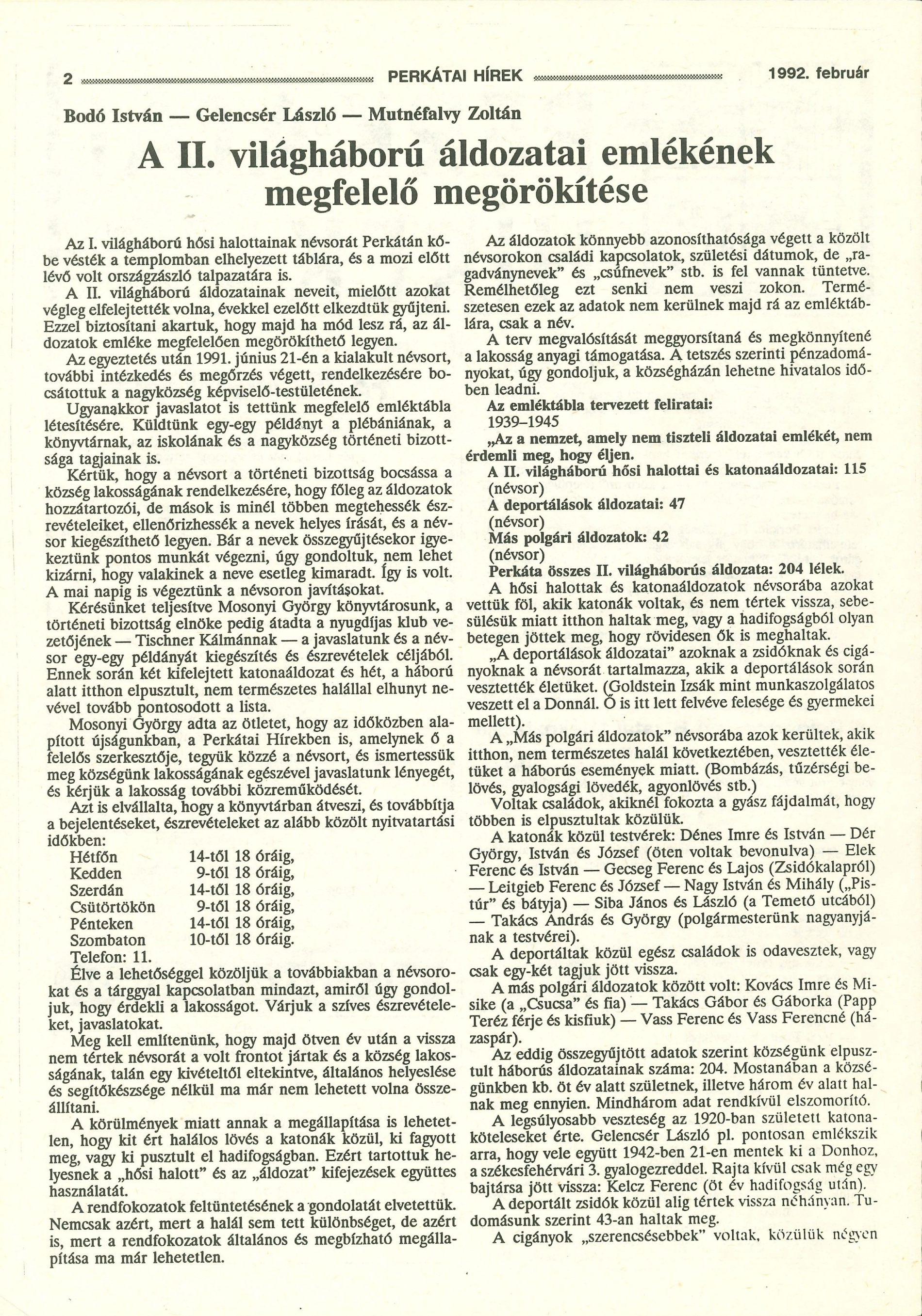 [1] Perkátai Hírek 1992. február. 2. p.