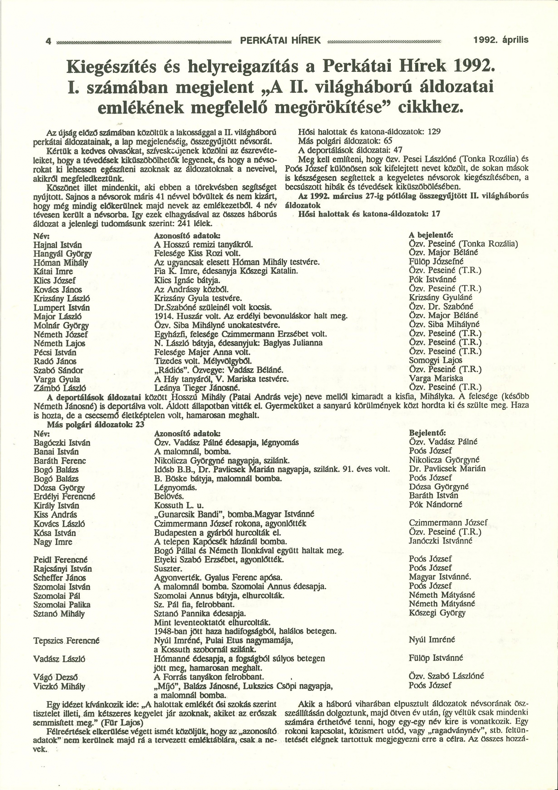 [2] Perkátai Hírek 1992. április. 5. p.