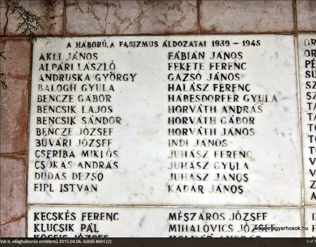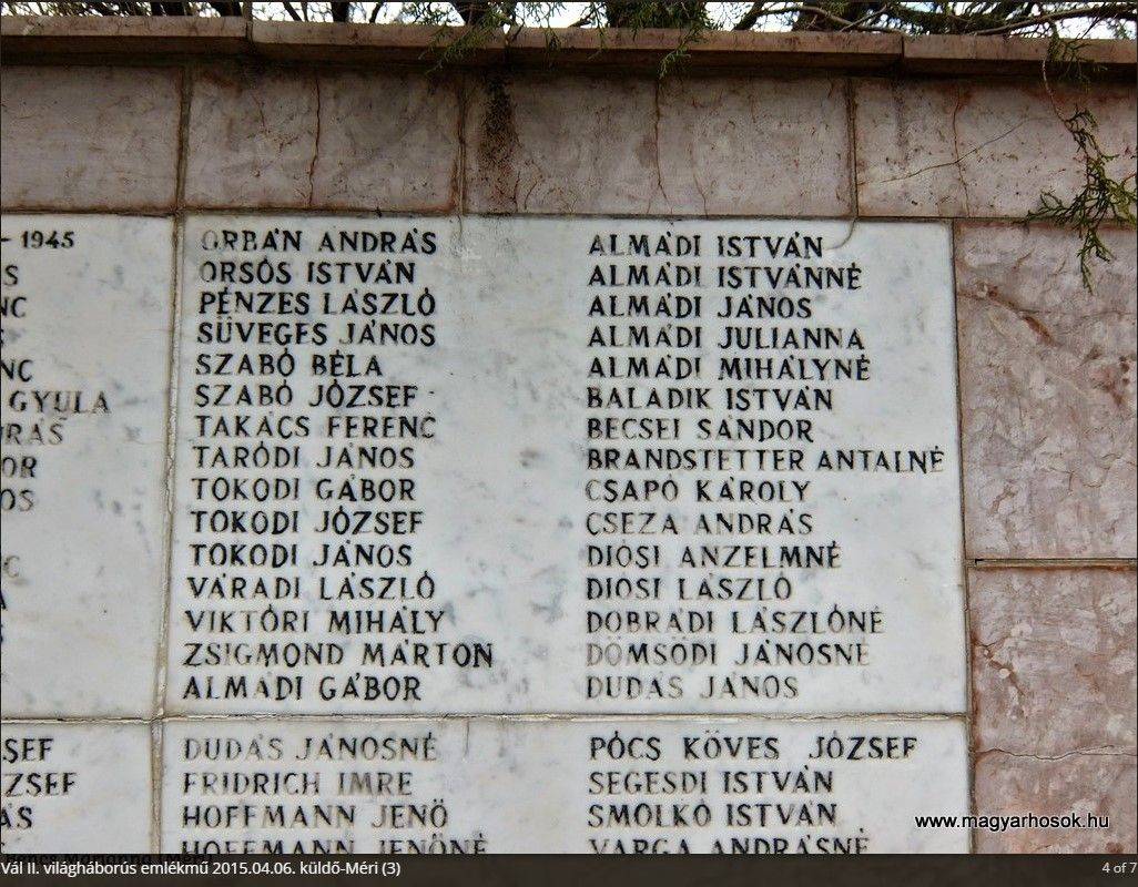 Váli második világháborús emlékmű. Forrás: https://www.magyarhosok.hu/val/ 2025. március 12.