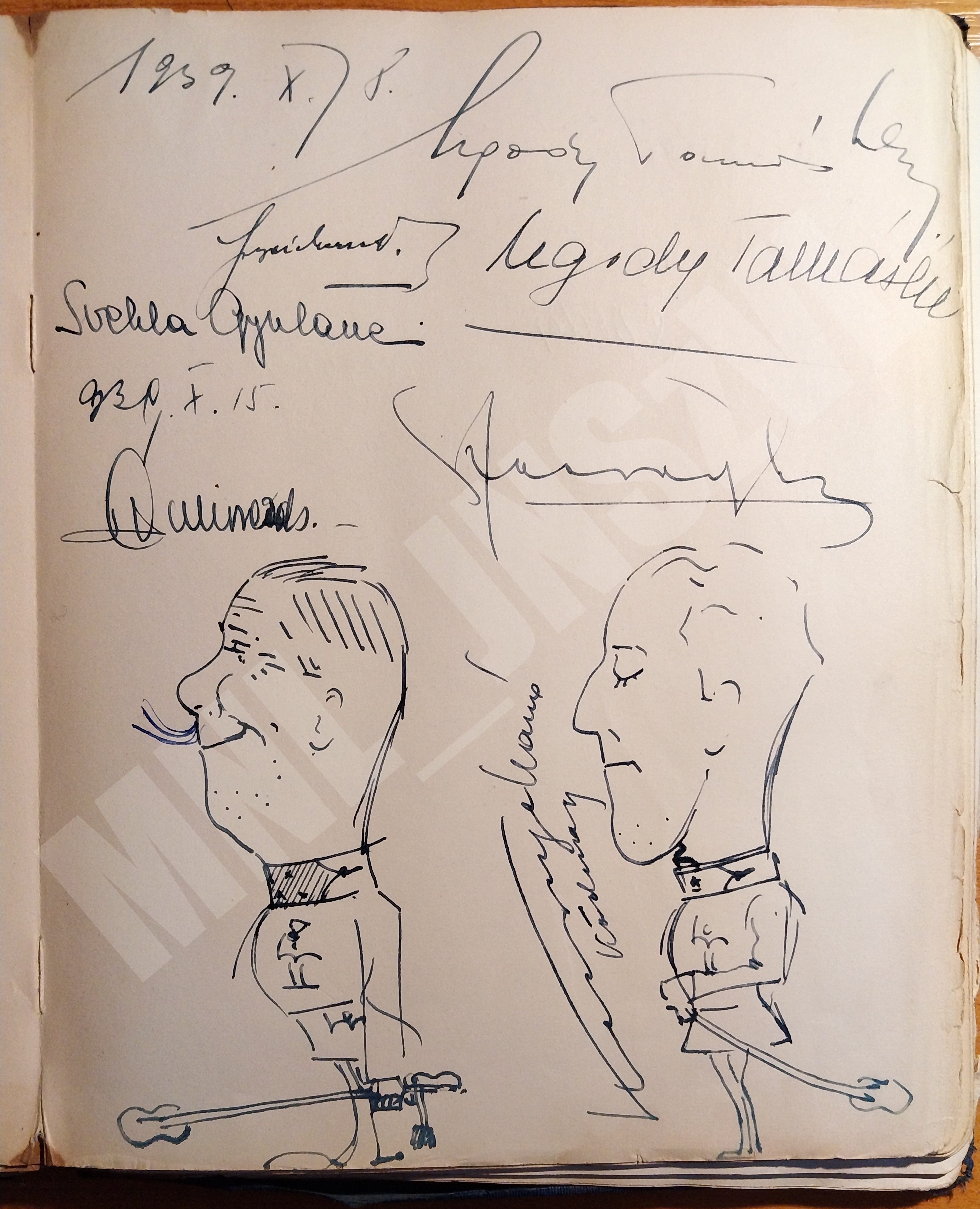 Pólya Tibor karikatúrái az Alexander család vendégkönyvéből