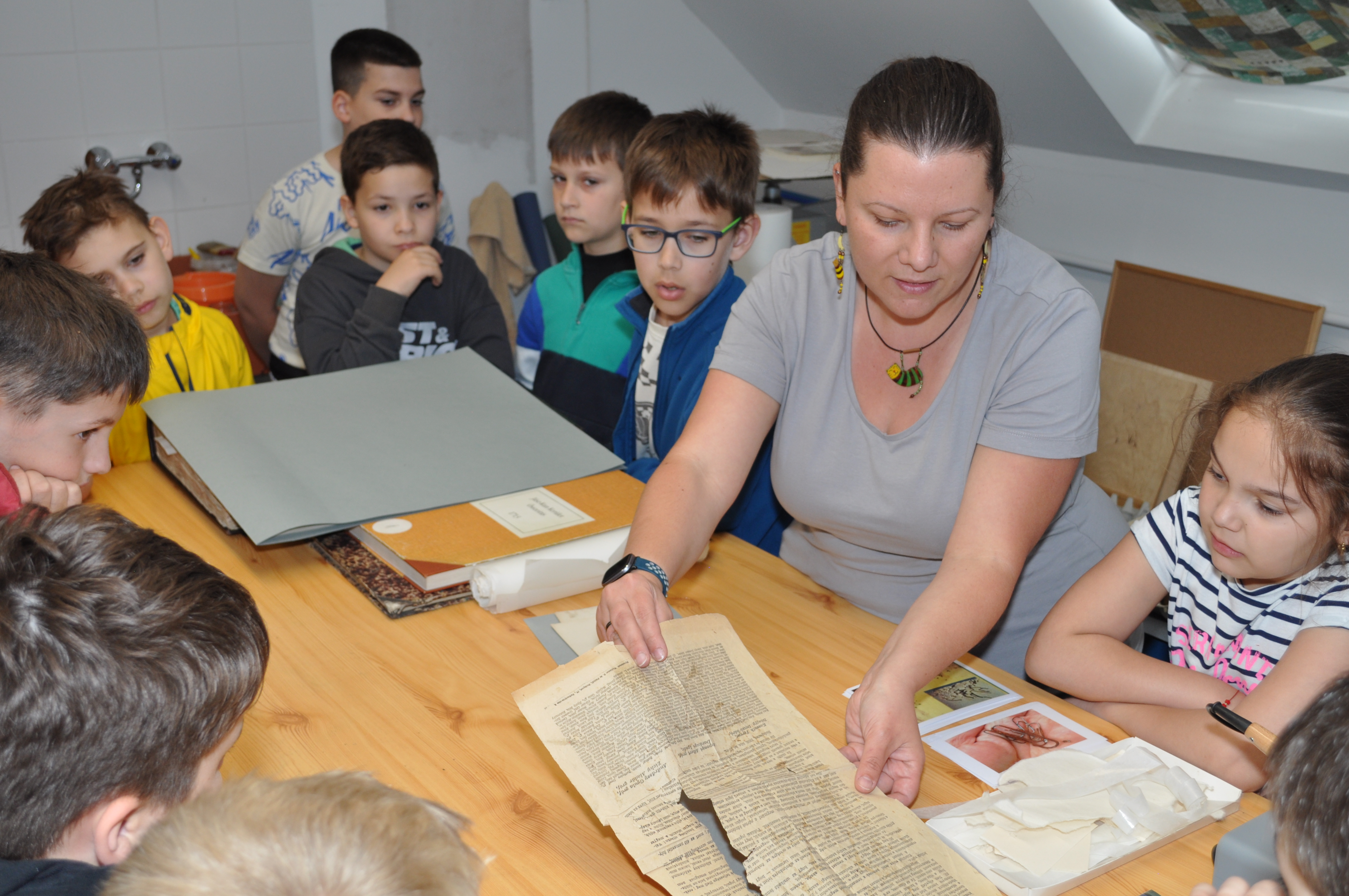 A foglalkozás végén a gyerekek maguk is végigjárják azt az utat, amely egy restaurálás előtt álló irat vizsgálatától a javításig vezet.