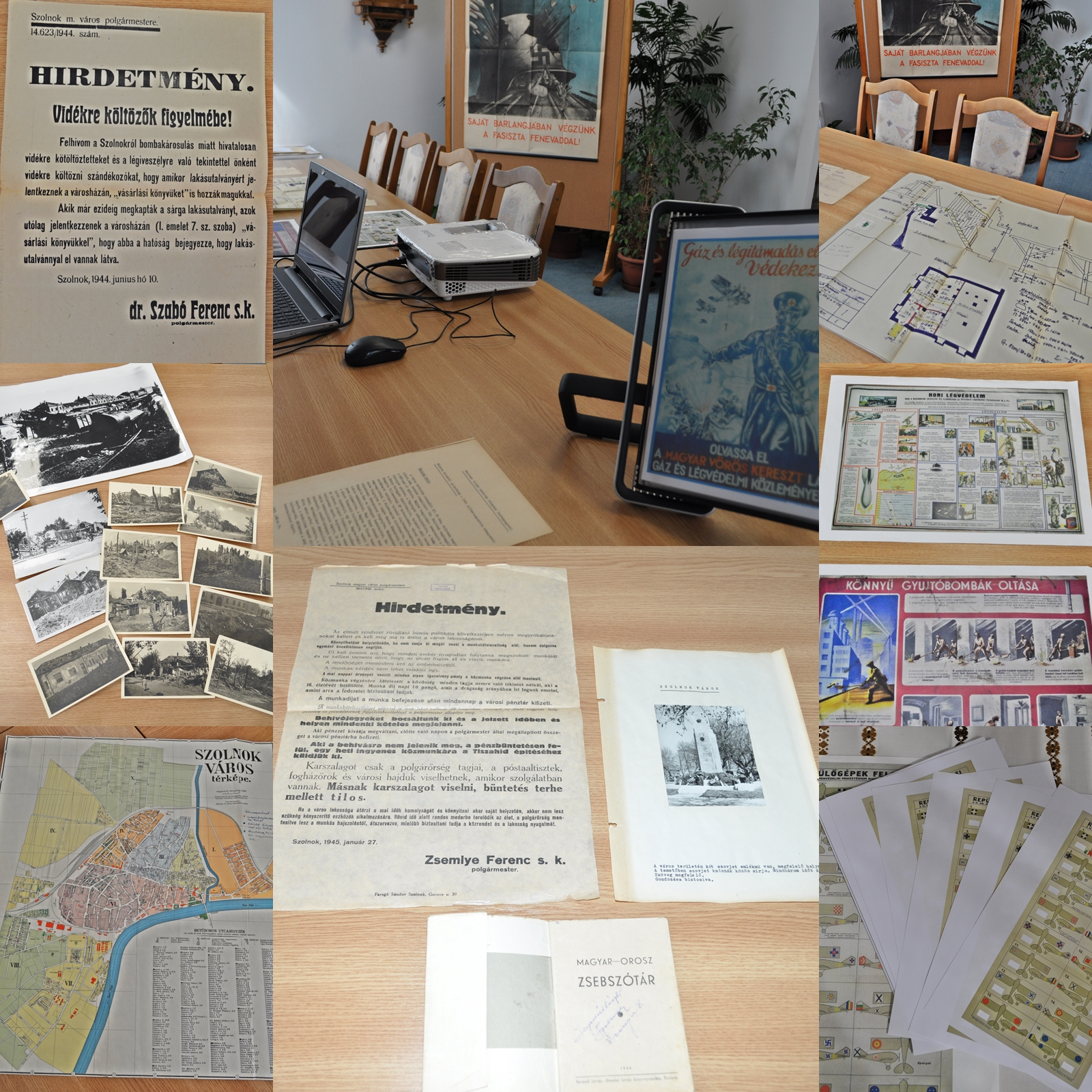 Szolnok a második világháborúban súlyos légitámadásoknak volt kitéve, amelyek elsősorban a vasúti csomópont és a repülőtér miatt célozták a várost. A legbrutálisabb támadás 1944. június 2-án érte a települést, amikor 870 rombolóbombát dobtak le a szövetségesek, ami óriási pusztítást végzett a vasútállomáson és környékén. A háború végén a németek jelentős haderőt állomásoztattak Szolnokon, melyről levéltári iratok tanúskodnak. Milyen volt a hátországi élet? Milyen sors várt a besorozott férfiakra? Szolnok katonai birtokbavételét követően milyen volt a településen maradt lakosság kapcsolata a „felszabadítókkal”? A második világháború helyi eseményeit feldolgozó foglalkozást gazdag levéltári forrásanyaggal illusztráljuk.