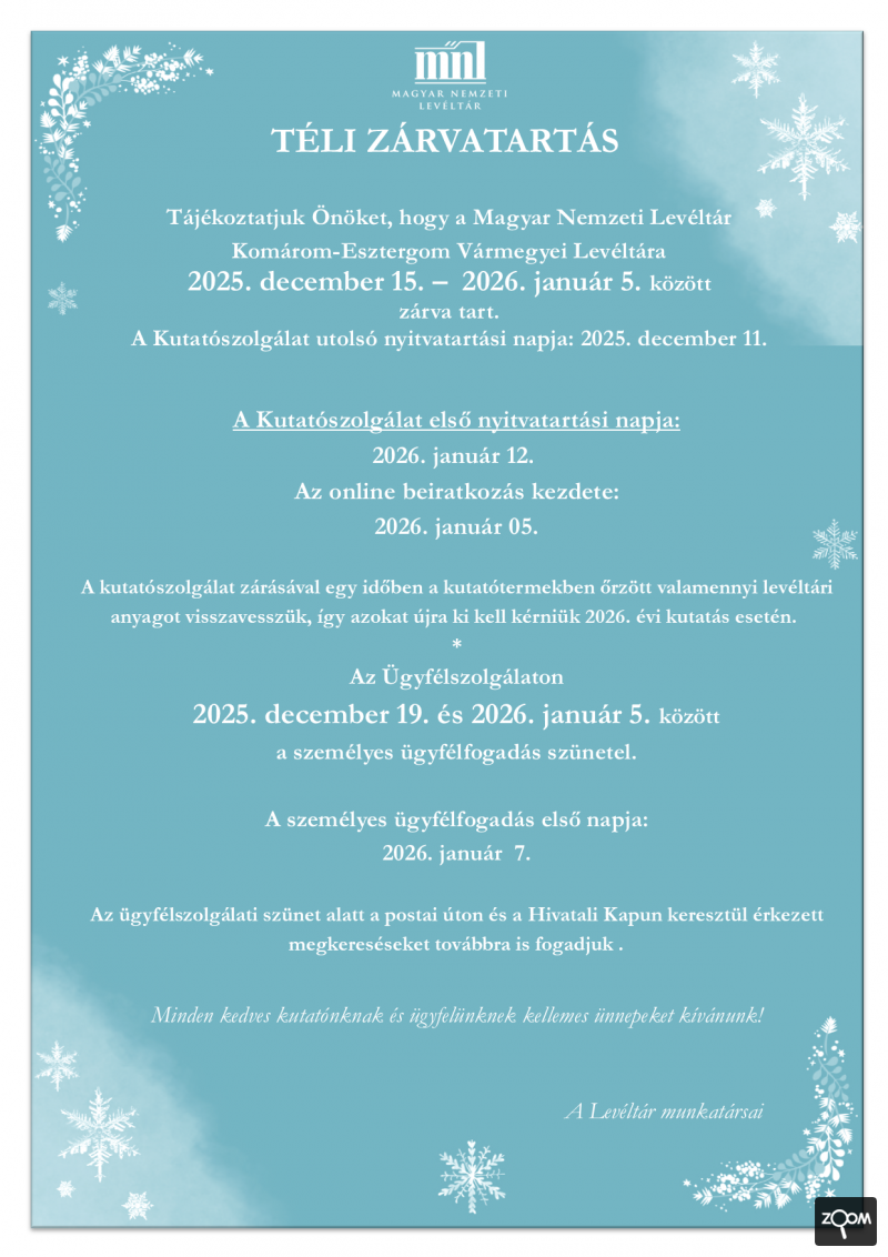 Levéltári órák az MNL Komárom-Esztergom Vármegyei Levéltárában és Komáromi Fióklevéltárában