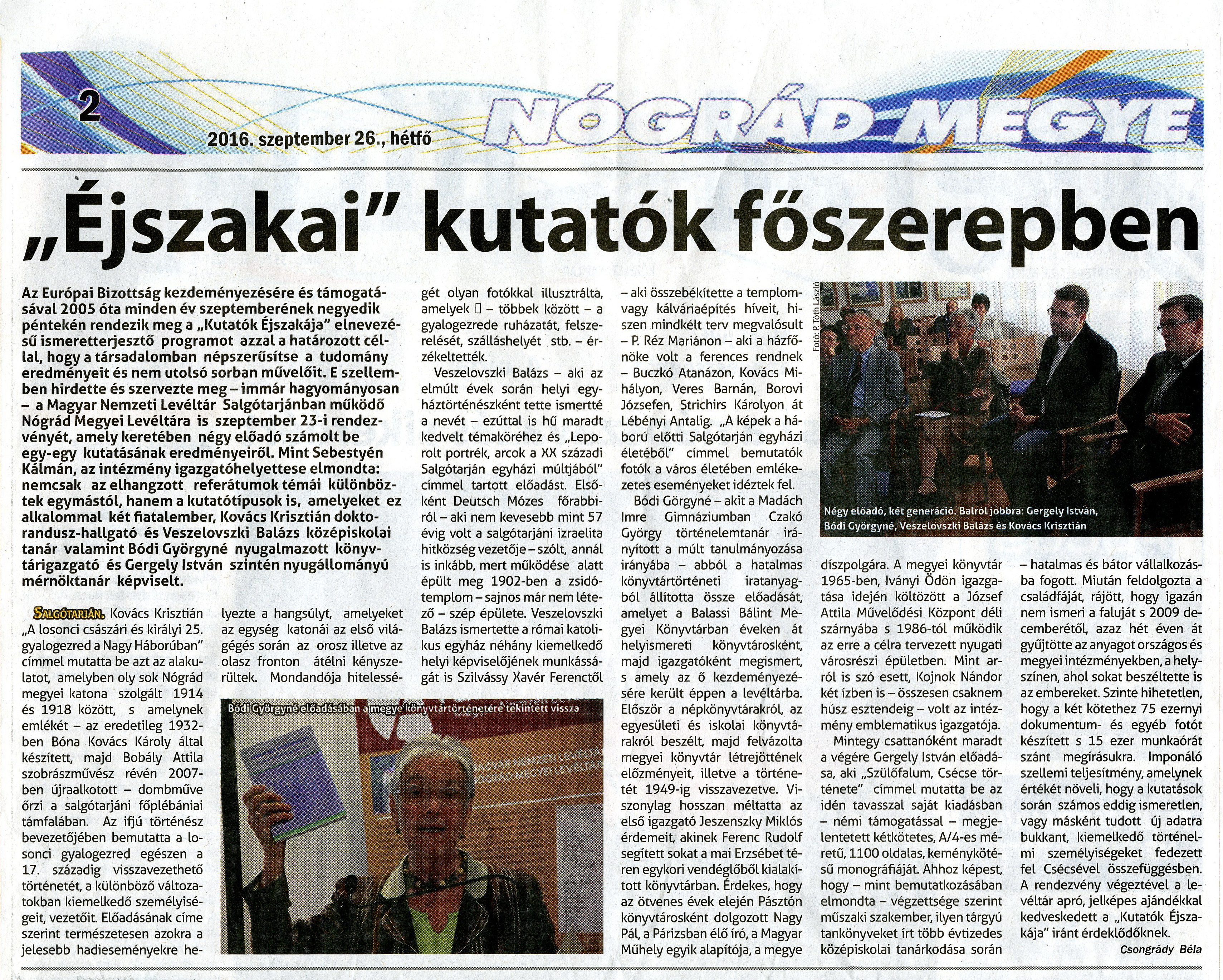 A Nógrád Megyei Hírlap tudósítása rendezvényünkről