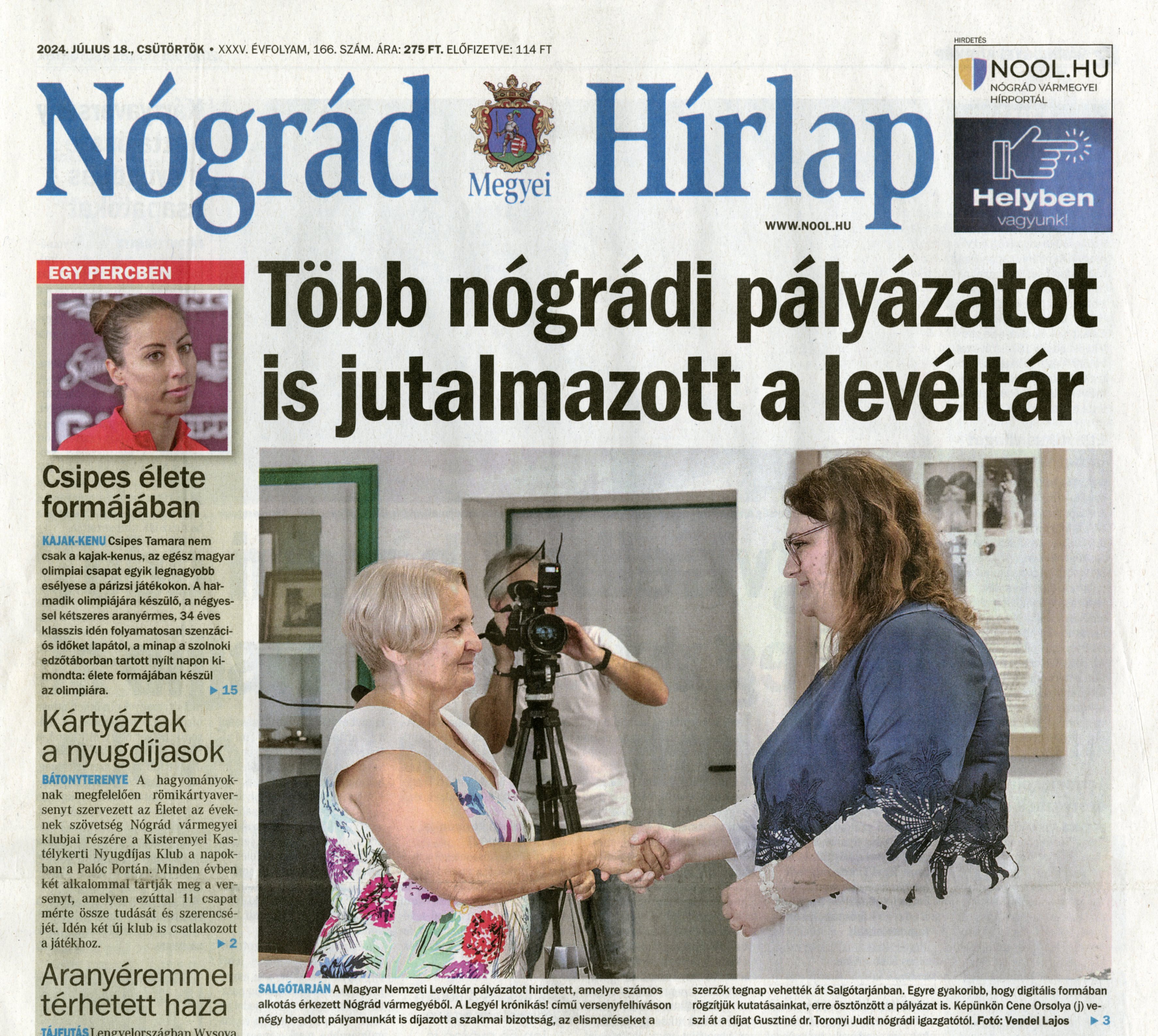 Nógrád Vármegyei Hírlap cikke, 2024.07.18.
