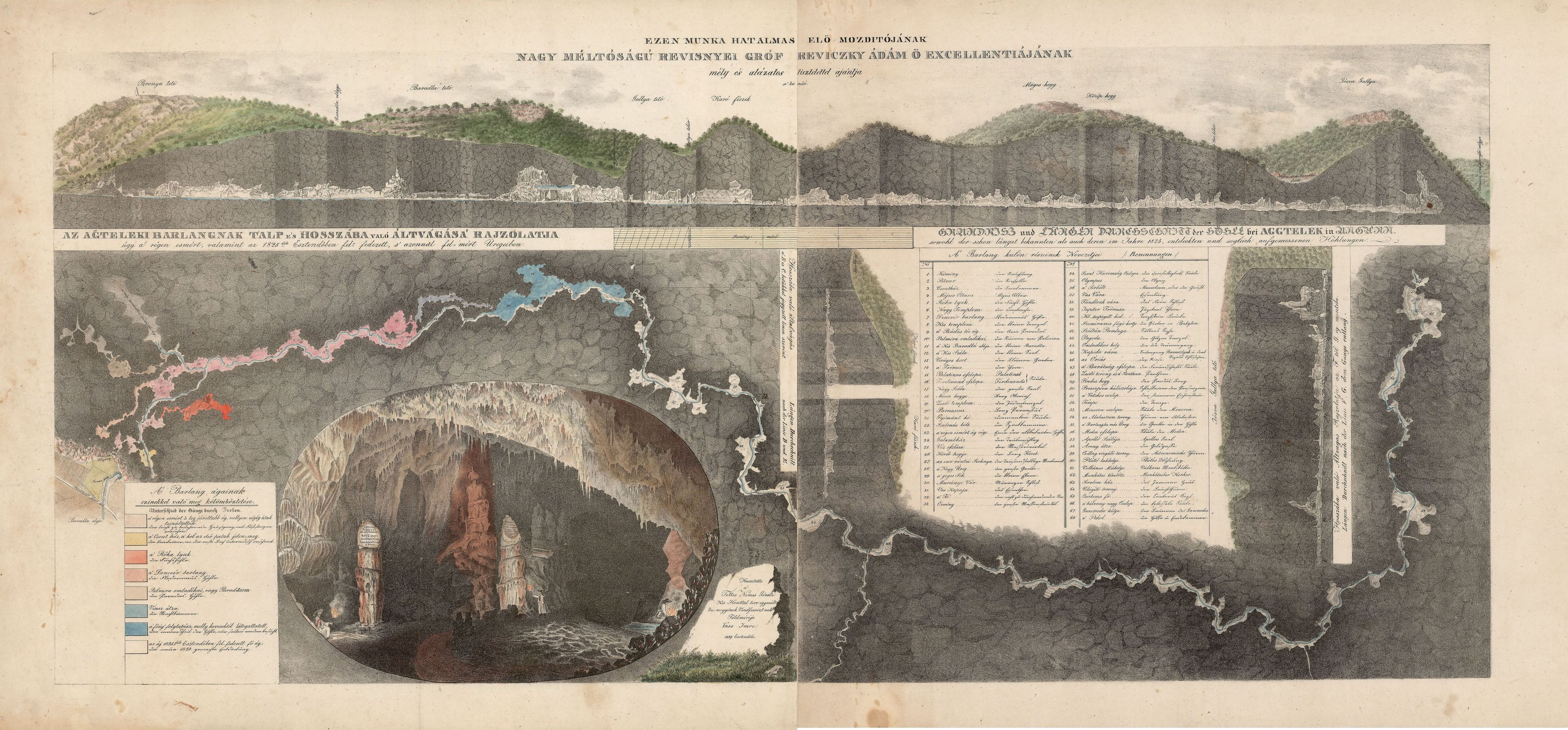 A Baradla-barlang alaprajza és hosszszelvénye, 1831. Vass Imre munkája