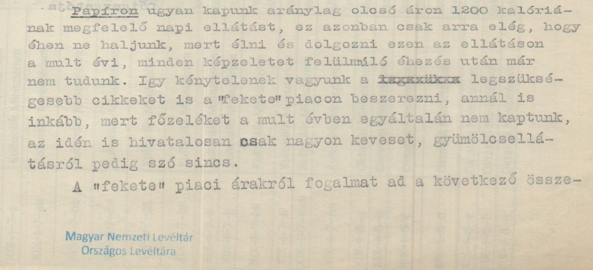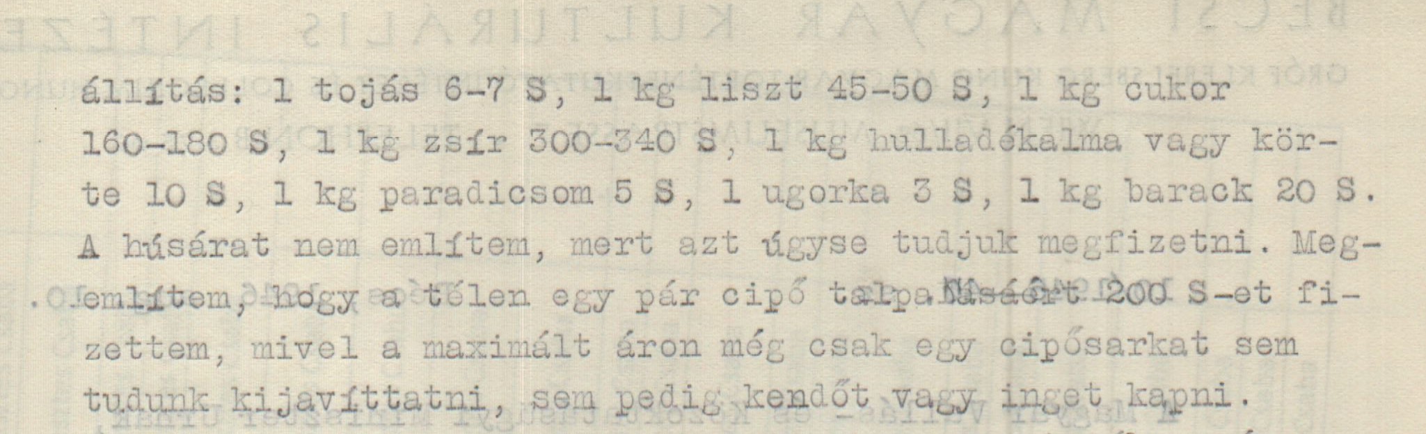 Miskolczy Gyula jelentése a Vallás- és Közoktatási Minisztériumnak a drága élelmiszerárakról