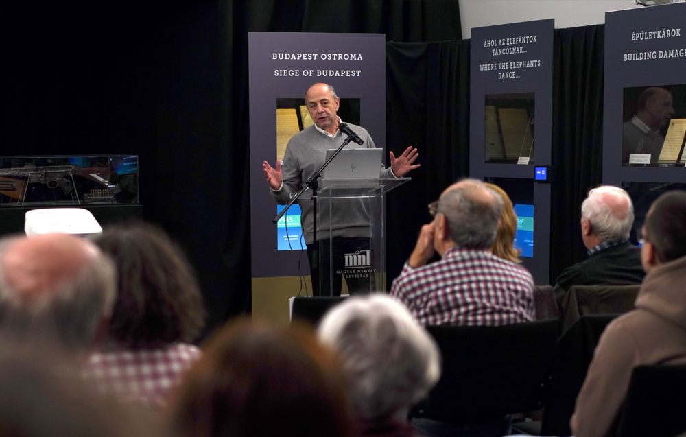 A szakember kiemelte, hogy az 1956-os forradalom kitörését követő első szovjet beavatkozás nyomán már október 28-án napirendre került a „magyar ügy.” Ezzel kapcsolatban az előadó ismertette a kiállított iratokat is. A források ismeretében már tudjuk, hogy a magyar ENSZ-képviselő, Kós Péter, halogató magatartása miatt a világszervezet nem reagált a magyar eseményekre, amit Nagy Imre miniszerelnök távirata belügynek nyilvánított, miközben a nyugati hatalmak között a Szuezi válság miatt megszűnt a beszélő viszony. Kós Péter visszahívása után Szabó János lett a magyar ENSZ-képviselő, de valójában „cseberből vederbe” helyzet alakult ki, mivel ő Székely Bertalan fedőnéven szolgálta a magyar Államvédelmi Hatóságot (ÁVH). Felettesei, Hollai Imre őrnagy és Rácz Pál főhadnagy voltak, akik – talán senkit sem lepünk meg ezzel – közvetlenül Moszkvából kapták az utasításokat. Nem véletlen tehát, hogy Szabó előbb értesült a Kádár-kormány megalakulásáról, mint néhány, ekkor még bujkáló kormánytag, és november 4-től kezdve már nyíltan a szovjeteknek engedelmeskedett. A kétségbeejtő helyzeten Kéthly Anna szociáldemokrata politikus, országgyűlési képviselő próbált változtatni, de Dag Hammarskjöld főtitkár nem fogadta őt, és nem kapott szót, az akkreditációs bizottságnak írt levele hatástalan maradt, így Magyarországra nem érkeztek ENSZ békefenntartó csapatok.