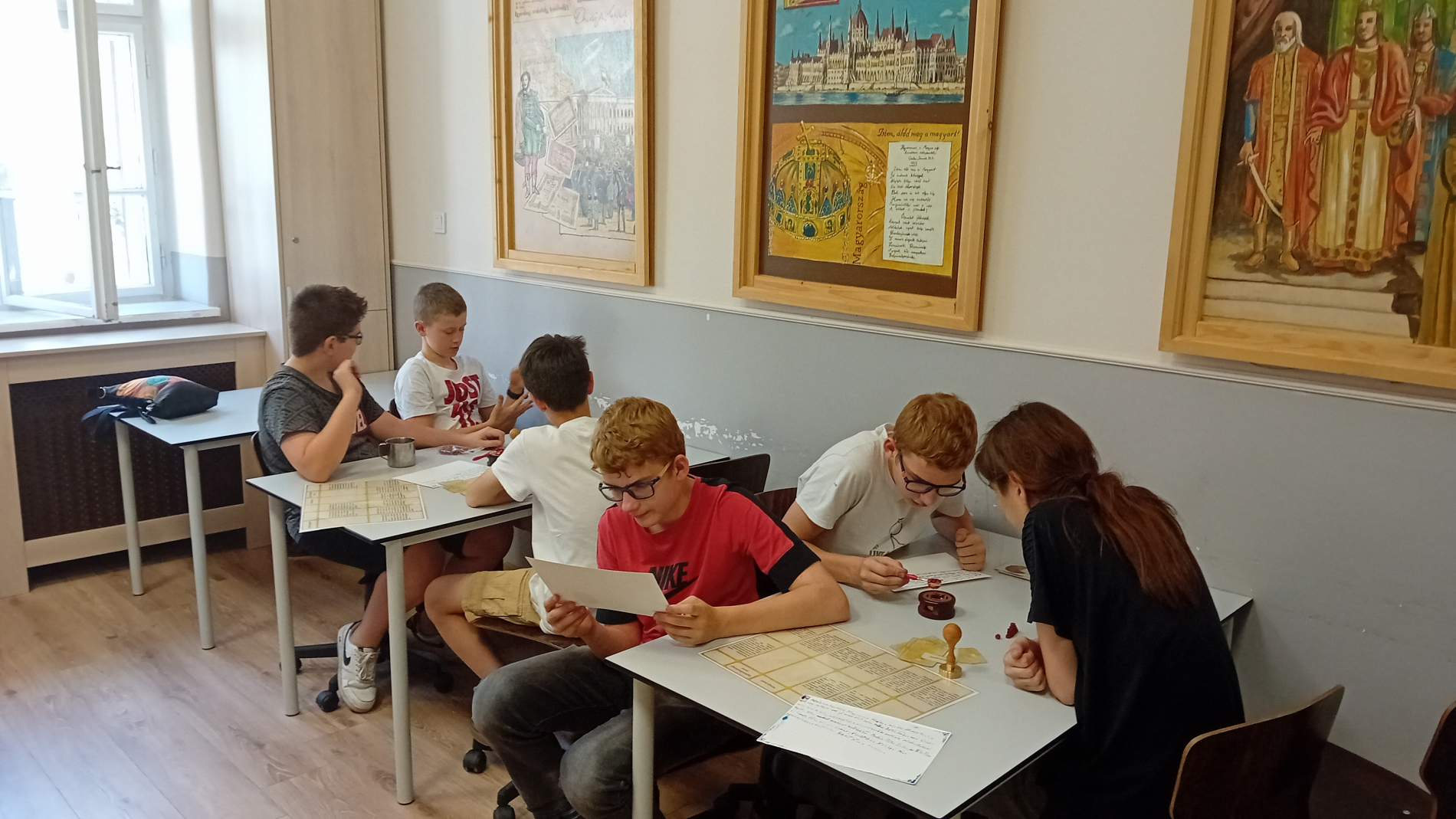 A foglalkozás keretében többszintes kancelláriává varázsoltuk a Magyar Nemzeti Levéltár Bécsi kapu téri palotáját, a diákok csoportokban tevékenykedtek két műhelynek berendezett helyszínen, ahol egy III. Béla által kibocsátott oklevél szövegére épülő feladattal és középkori pecséteket felvonultató kártyajátékkal mélyítették el az oklevelekről szerzett tudásukat. Egyes középkori pecsétmásolatokat pedig kézbe vehettek és megvizsgálhattak. Ezután a gyakorlatban is kipróbálták magukat a scriptor és sigillator szerepében. Kalligrafikus tollak és szövegformulák segítségével megírták nemesi kiváltságukat igazoló okleveleiket, majd előkerültek a viaszpecsétöntők és pecsétnyomók, melyekkel Hunyadi Mátyás titkos pecsétjének másolatát helyezték rá.