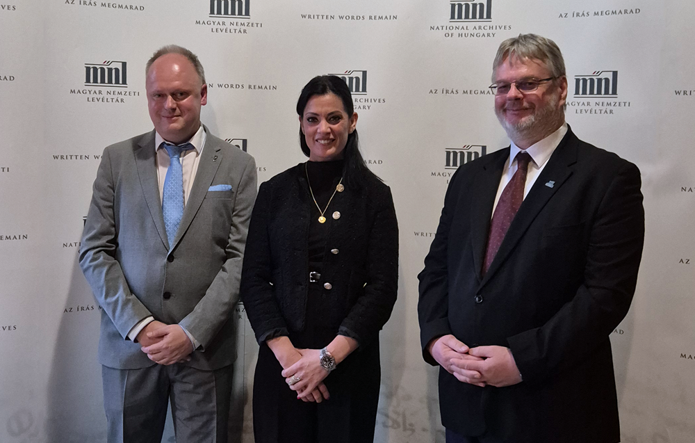 – Láthatják, milyen csodálatos épületben vagyunk, a Magyar Nemzeti Levéltár Országos Levéltára Bécsi kapu téri palotája egy valódi kincsesház – jelentette ki szerdán délután köszöntőbeszédében Szabó Csaba, a Magyar Nemzeti Levéltár (MNL) főigazgatója a Bethlen Ékszer bemutatása alkalmából tartott sajtótájékoztatón, amelynek az volt a mottója: „Régi iratok – Új ékszerek”. Szabó Csaba kifejtette, hogy a levéltár olyan, mint egy gyémántbánya. Szavai szerint a levéltárosoknak is le kell menniük a „mélybe”, a raktárakba, a polcok közé ahhoz, hogy kincsekre leljenek. Emlékeztetett arra, hogy a Bécsi kapu téren őrzik az ország második legrégibb oklevelét, Könyves Kálmán király 1109-es veszprémvölgyi kiváltságlevelét. Ez egy Szent István kori oklevél átirata. Emellett az intézmény gyűjteményét gazdagítja minden magyar törvény eredeti példánya. – Persze minden nem kincs. Ha bemegyünk a raktárakba, akkor tulajdonképpen egy szénbányában vagyunk, de a legértékesebb szenek is itt vannak, azok pedig a gyémántok – emelte ki az MNL főigazgatója. Hozzátette: a Magyar Nemzeti Levéltár az ország legrégebbi, több mint 300 éves és egyben legnagyobb közgyűjteménye, ahol 300 kilométernyi iratanyagot őriznek. – A levéltári palota is egy valódi ékszerdoboz, több mint százéves, 1923. szeptember 15-én költöztek be ide az elődeink – mutatott rá. Szabó Csaba örömét fejezte ki, hogy ha csak néhány órára is, de a Bécsi kapu téri palota további csodálatos dolgokkal, a Bethlen Ékszer kincseivel gyarapodott. – Higgyék el, a legszebb ékszerek mellett is a hölgyek a legcsodálatosabb ékszerek – hangsúlyozta az MNL főigazgatója.