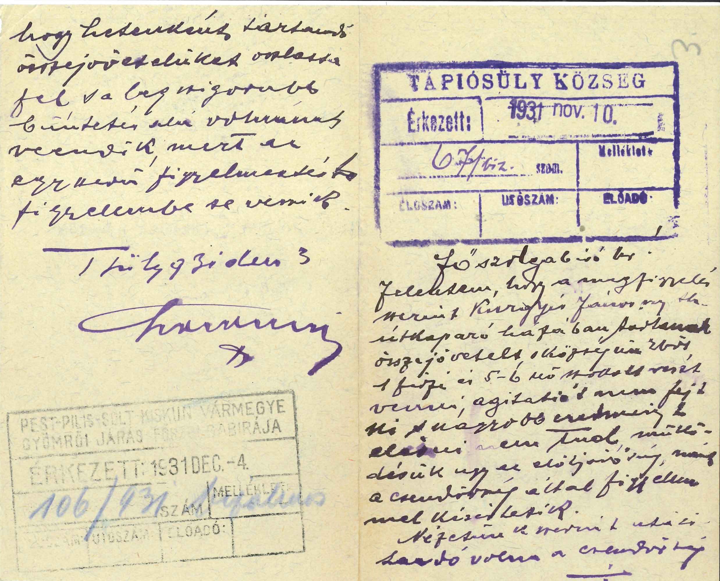HU-MNL PML IV. 401. a. PPSK vm. főispánjának bizalmas iratai 128/1931.