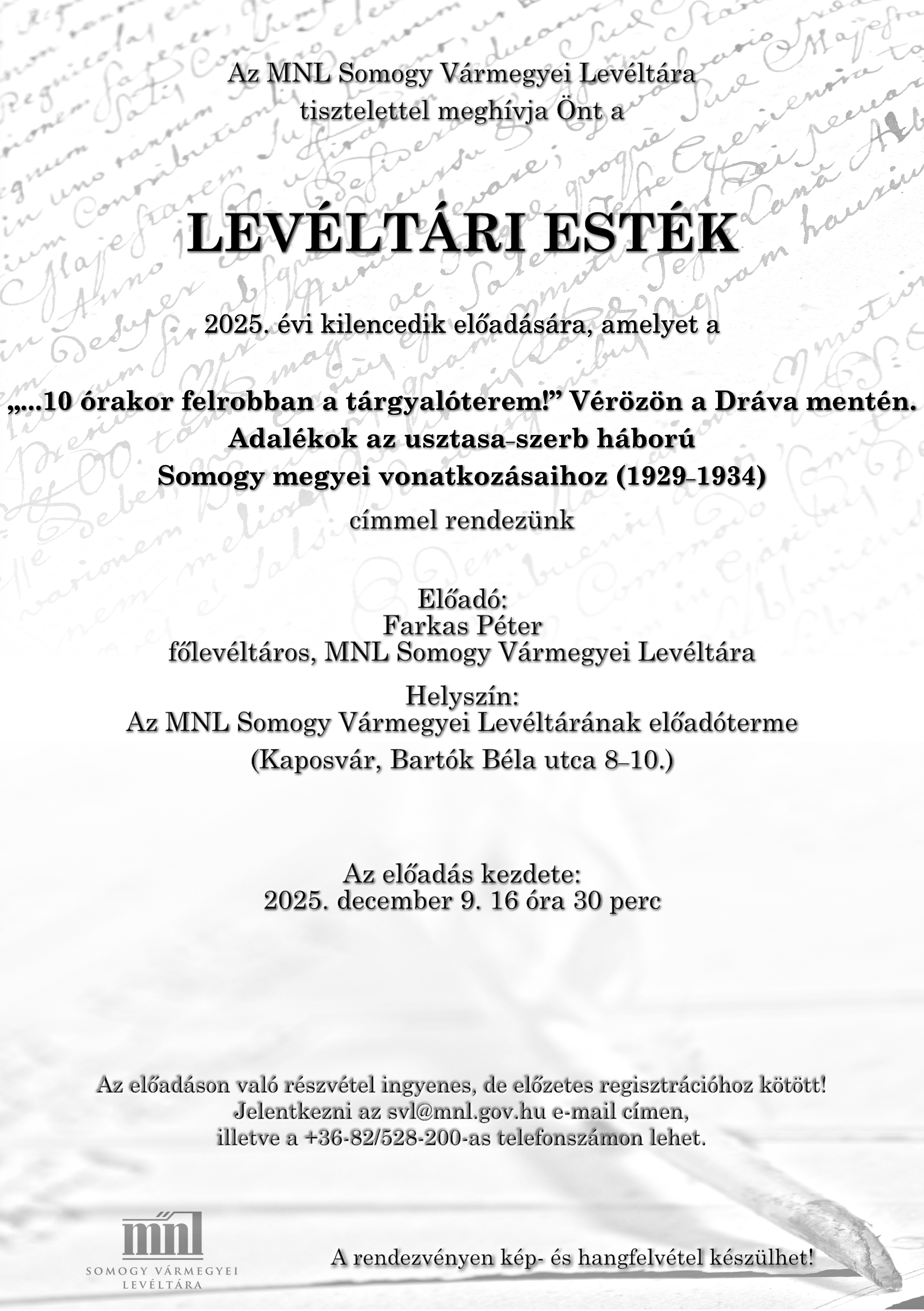 Meghívó a Levéltári esték 2025. december 9-i előadására