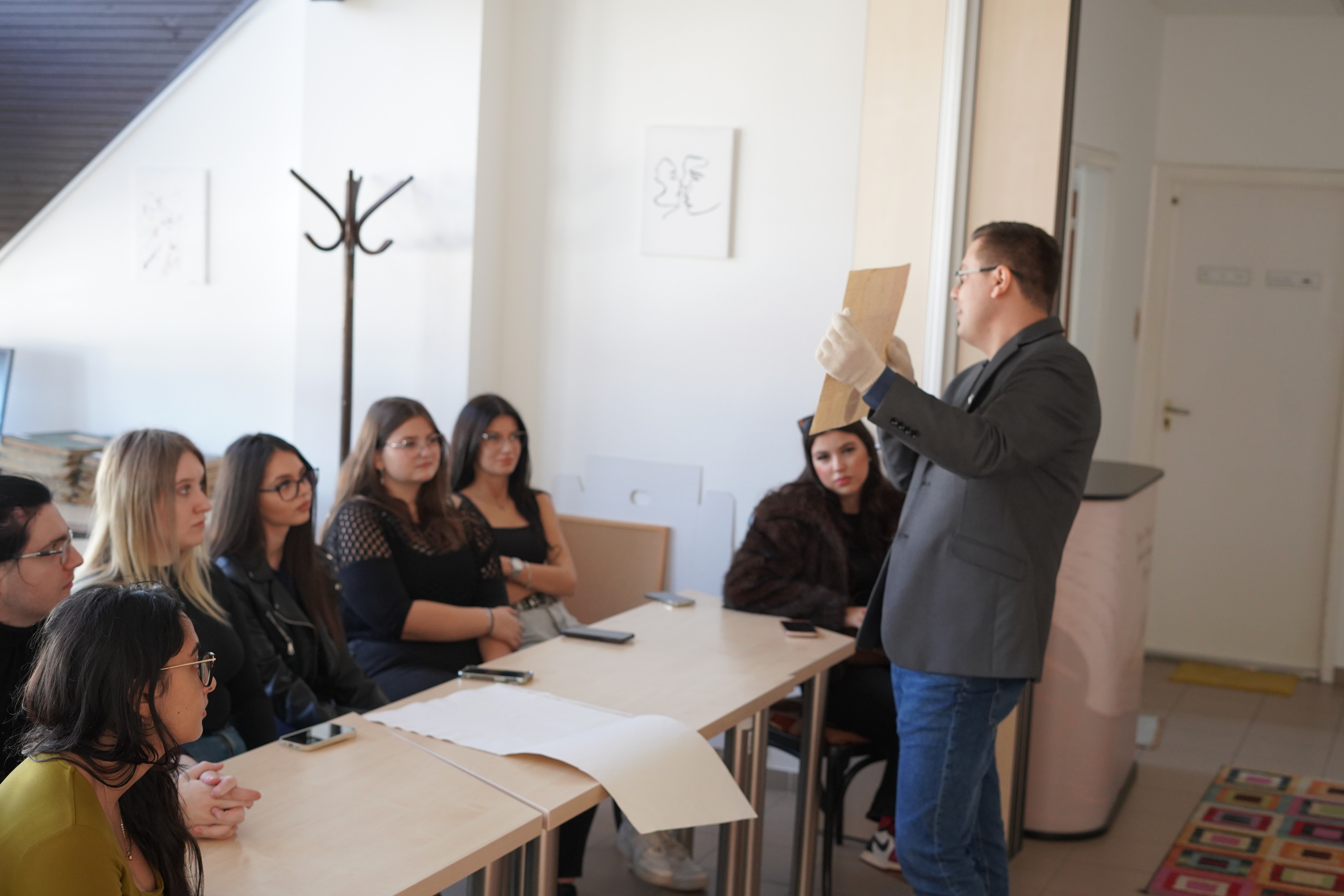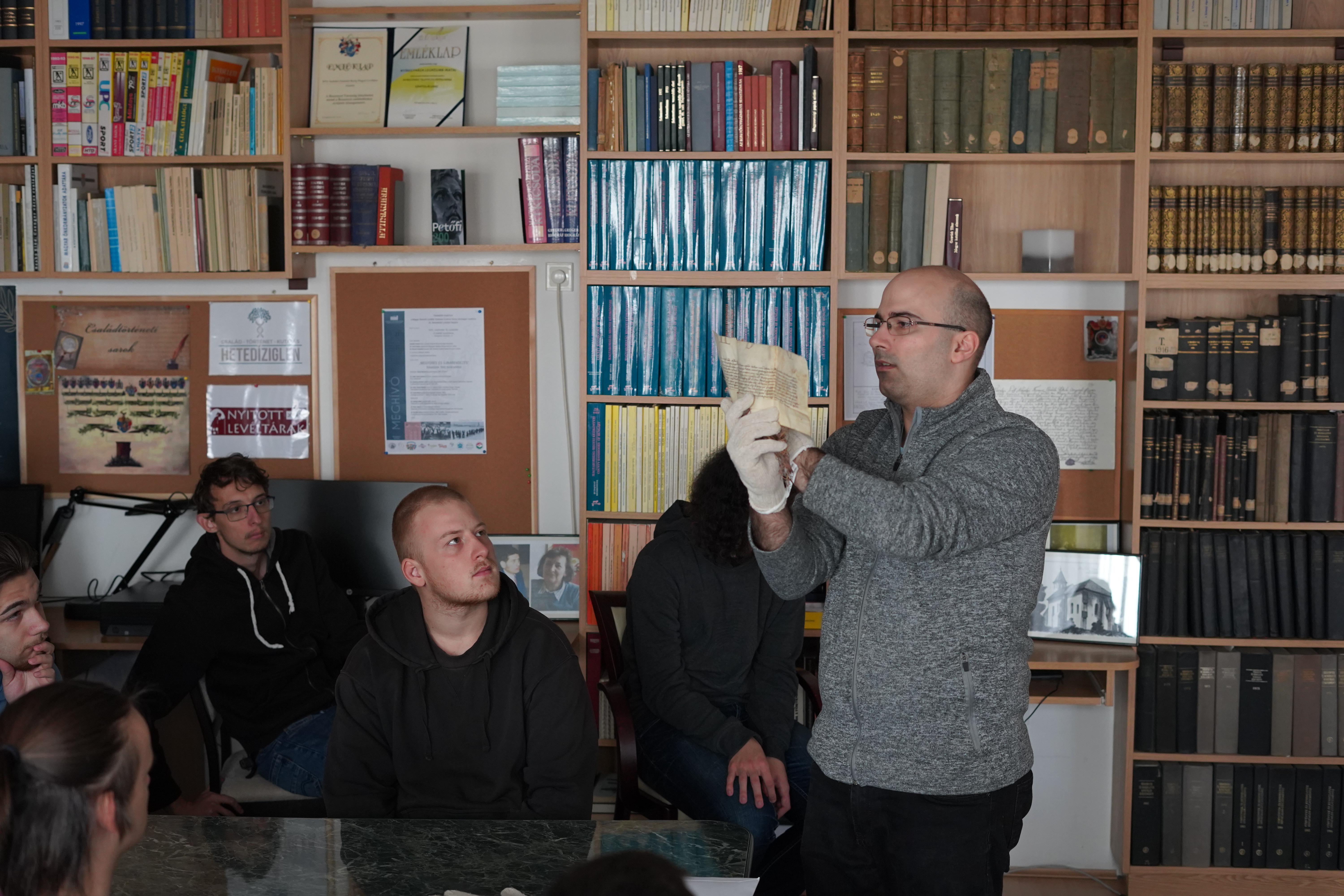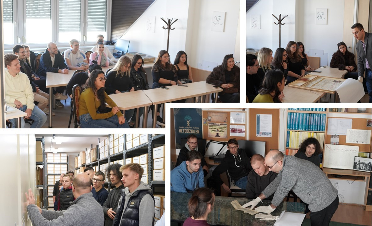 A Garas Norbert és Szemán László levéltárosok által megtartott foglalkozásokon a hallgatók megismerhették a levéltár történetét, megtudhatták, hogy milyen sokrétű munka folyik az intézményben. A résztvevők a 13. századtól a 20. századig olyan eredeti forrásokkal találkozhattak, amelyek Szabolcs és Szatmár vármegyék, továbbá Nyíregyháza történetének fontos eseményeit örökítették meg. A középkori oklevelek, a kora újkori címeres nemeslevelek, valamint az 1831-es kolerajárvány pusztításairól tanúskodó egyházi anyakönyvek mellett bemutatásra került II. Rákóczi Ferenc vetési pátense, Lónyay Menyhért díszpolgári oklevele és Nyíregyháza 1837-es privilégiumlevele. Lehetőség volt a családkutatók által sokat forgatott polgári anyakönyvi másodpéldányokba való betekintésre is. A levéltári óra második felében került sor a raktárlátogatásokra, valamint a földszinti kiállítótérben található Források 1945 történetéből című kamarakiállítás megtekintésére.