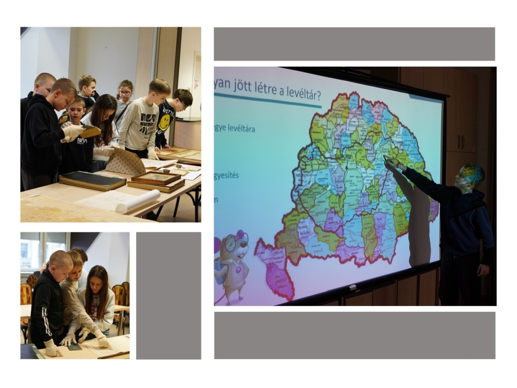 Az óra zárását a raktárlátogatás képezte, amely során Szőlőskerti Tagintézmény tanulói megtekintették a levéltár őrizetében álló legrégebbi oklevelet is.