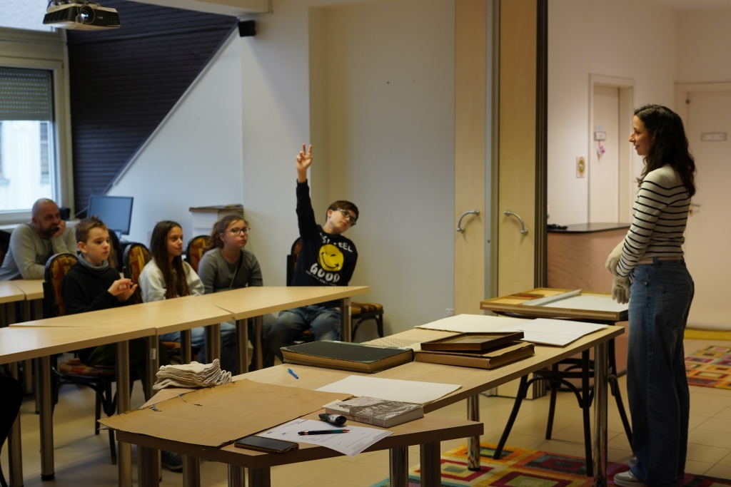 A „Levéltári séta” című programunk keretében a Szőlőskerti Tagintézmény tanulói megismerkedhettek az intézmény alapjaival, a levéltár és levéltárosok feladataival, az iratok védelmének szempontjaival. Nagy érdeklődés övezte az óra során bemutatott iratokat, így egy 1910-ben készült családi fényképet, egy 1397. évre datált oklevelet, a Vetési pátenst és a Mikecz család díszes, függőpecséttel ellátott nemeslevelét. A diákok kézbe vehették Vida Mihály csizmadia-legény vándorkönyvét is, amelyben található személyleírás révén megtudhatták, hogyan történt az azonosítás fénykép nélkül.