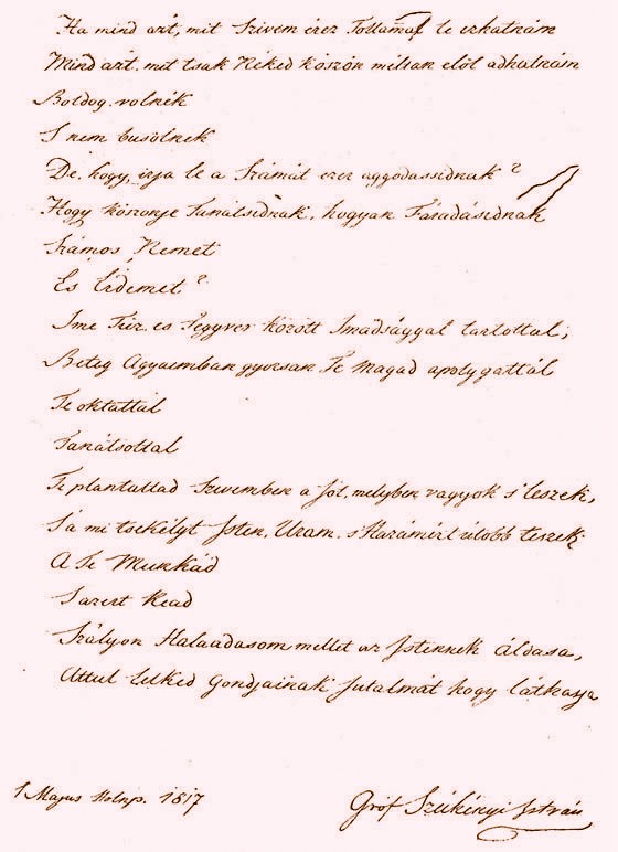 Zárásként idézzük Széchenyi István anyjához, gróf Festetics Juliannához írt, gyermeki hálával teli versét[7]: