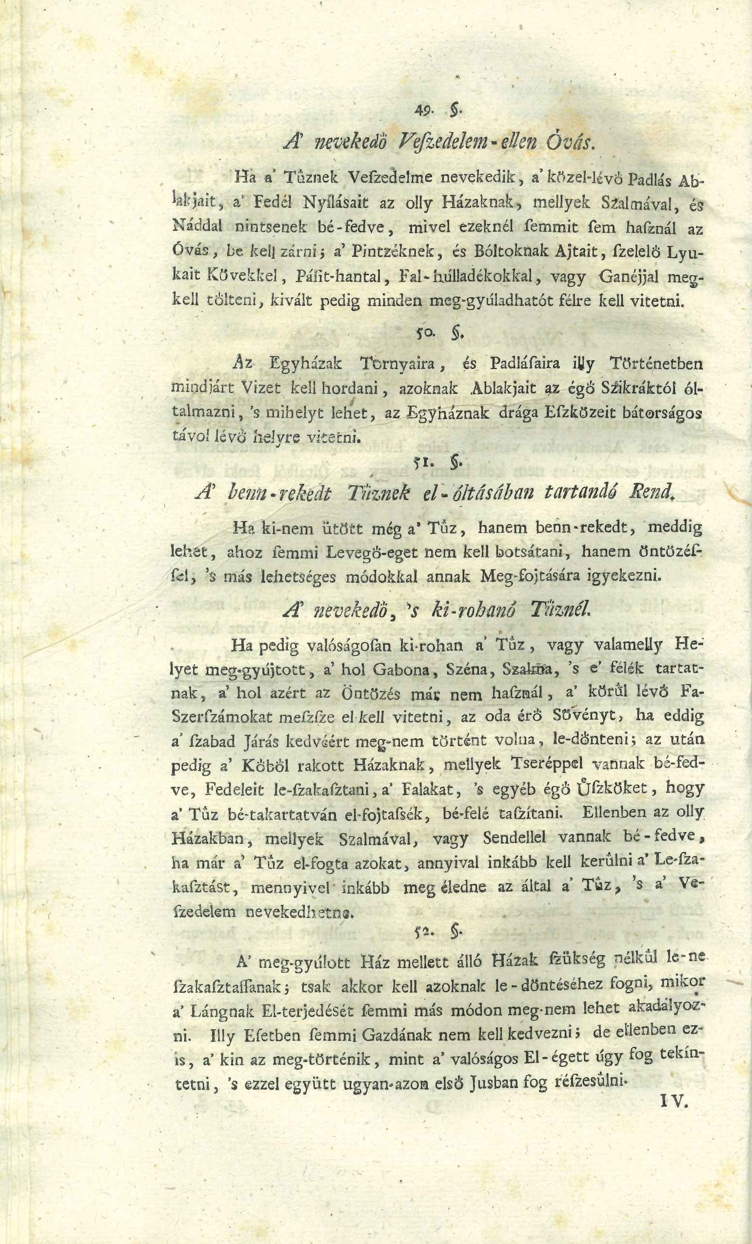 IV. Az El-óltatott Tűz ártalmas Következéseinek Meg-előzése (53-56. §) érdekében a legfontosabb, hogy az oltás után egy strázsa ott maradjon és ügyeljen arra, hogy a tűz ki ne újuljon. Oltáshoz használt szerszámokat helyre kell vinni, az esetleges alkalmi tolvajokat szigorúan meg kell büntetni [4], a tűzesetet pedig a vármegyének be kell jelenteni, hogy kivizsgálják a tűz keletkezését és az esetleges felelősöket.
