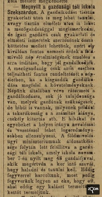 A gazdasági téli iskola megnyitásáról tudósít a Tolnamegyei Újság (1921. dec. 17.)