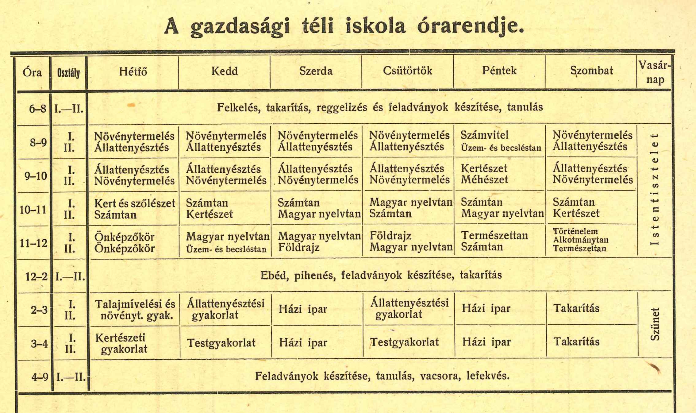 A gazdasági téli iskola óraterve