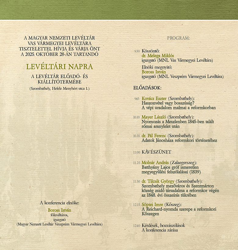 VAS VÁRMEGYEI LEVÉLTÁRI NAP 2025 | Vas vármegye a reformkorban