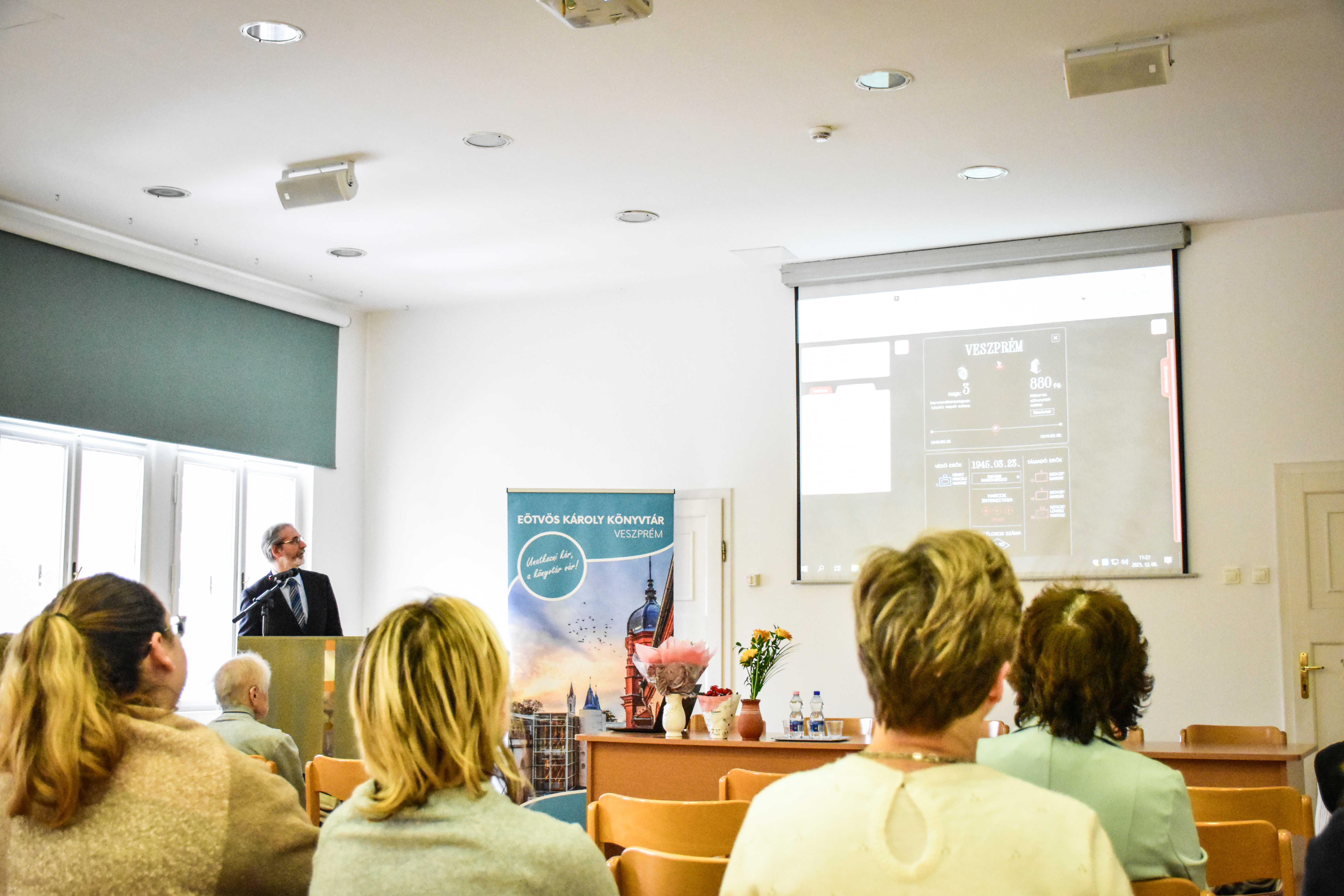 A vármegyei könyvtárosoknak szervezett szakmai napra meghívást kapott Boross István levéltár-igazgató, aki előadásában Veszprém város közel egy évszázadát alulnézetből dokumentáló Veszprémi Térképvándor adatbázist és alkalmazást mutatta be. Az előadás a Magyar Nemzeti Levéltár adatbázisait egy felületbe foglaló Adatbázisok Online (AOL) (https://adatbazisokonline.mnl.gov.hu/) bemutatásával kezdődött. Az előadó külön kiemelte a minap nyilvánosságra hozott „Magyarország katonai birtokbavétele 1944–1945” térképes alkalmazást és adatbázist. Az adatbázis létrehozásához a Veszprém Vármegyei Levéltár munkatársai is hozzájárultak iratválogatással, digitalizálással és az anyakönyvi adatok kigyűjtésével. Veszprém vármegye településeinek, köztük Veszprém városnak a II. világháborús anyagi és személyi veszteségei mostantól otthonról is elérhetők és megismerhetők a kutatók és érdeklődők számára.