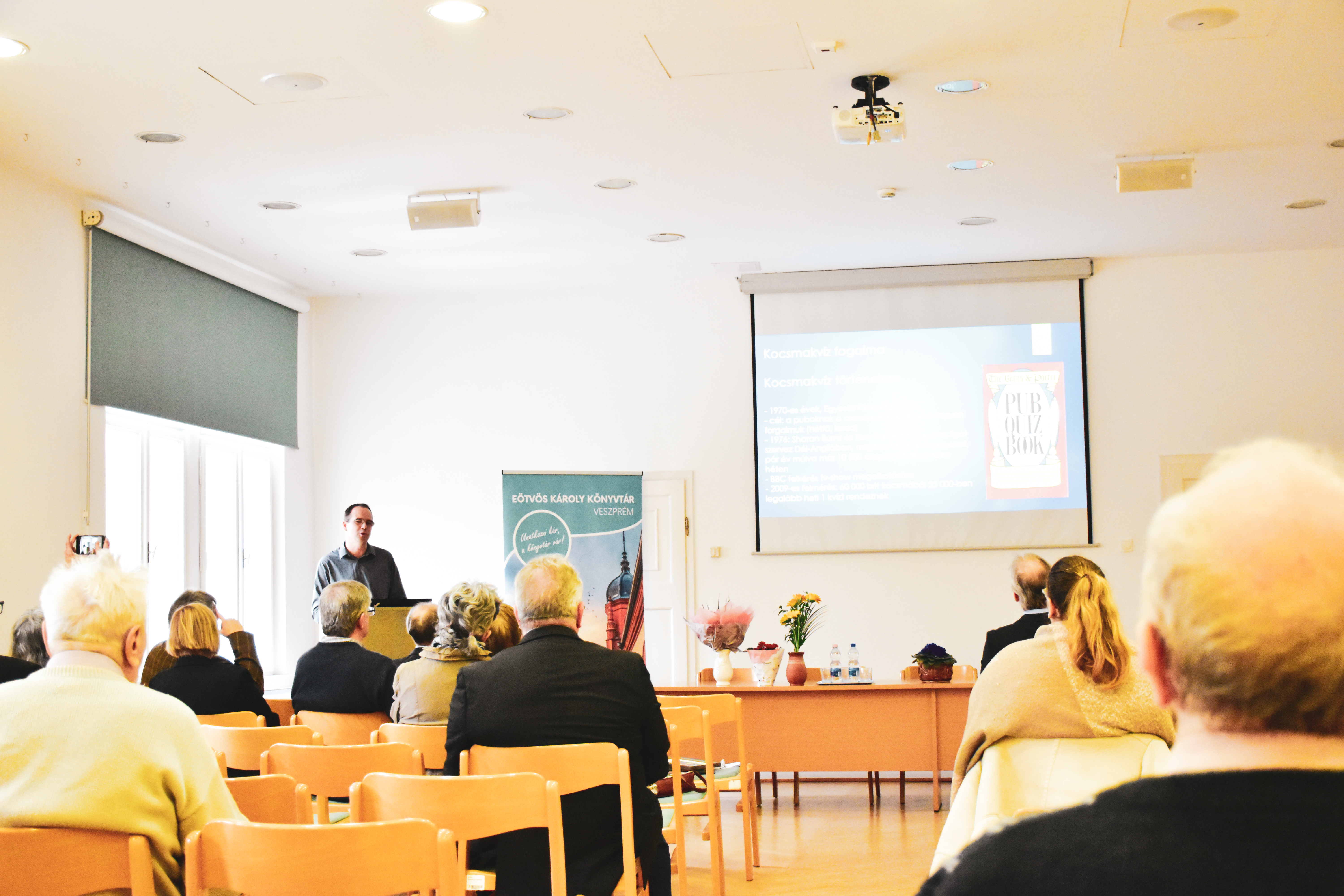 A rendezvény másik előadását Király András, az Eötvös Károly Könyvtár könyvtárosa tartotta „Ezt írjuk be! – (kocsma)kvízek a könyvtárban” címmel. A könyvtár népszerű kvízestjeinek hátteréről, a kvízmester által alkalmazott módszerekről konkrét példákon keresztül érdekfeszítő előadást hallgathatott meg a jobbára vármegyei könyvtárosokból álló közönség.