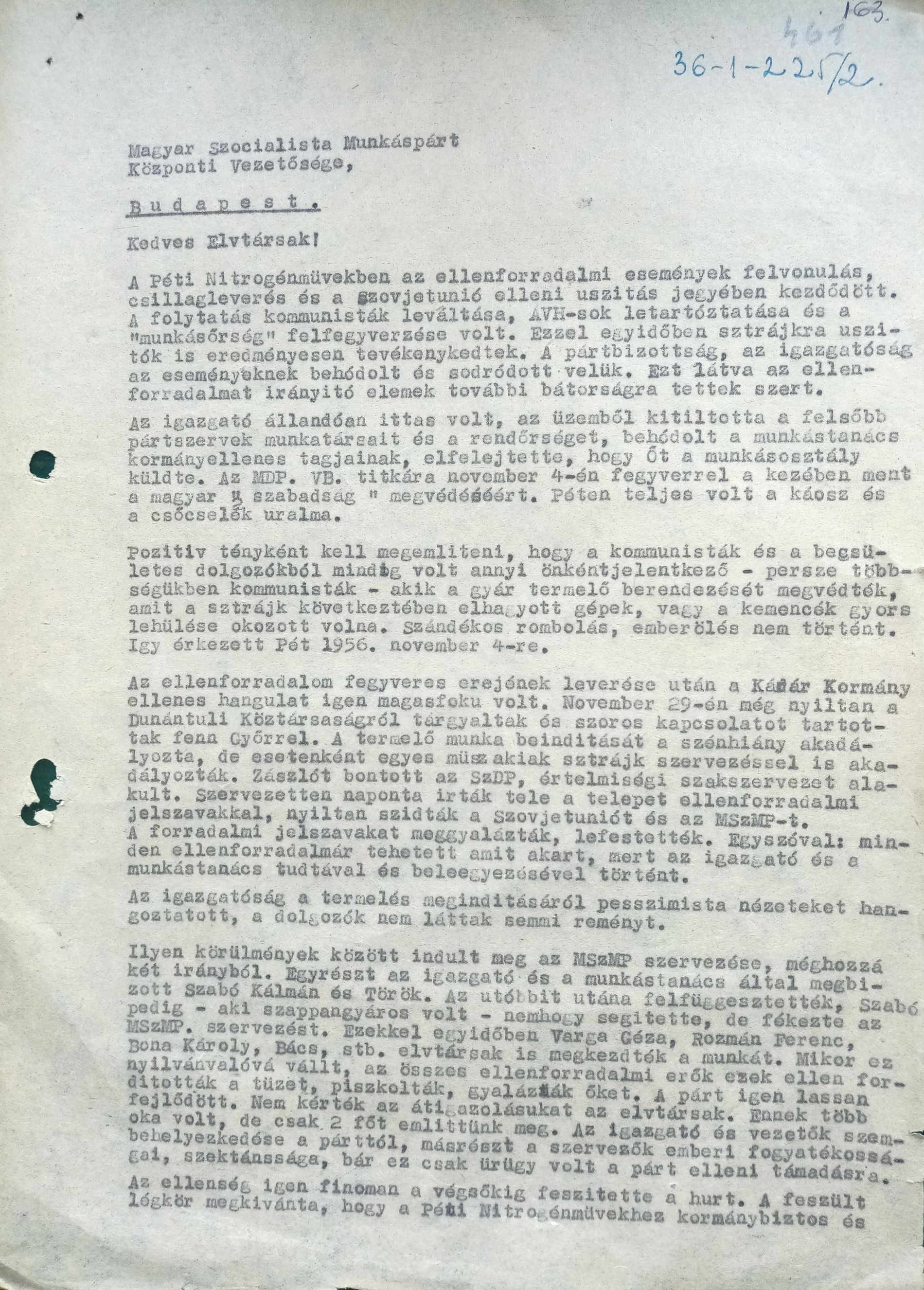 MNL-VeML-XXXV.1. - Az MSZMP Veszprém megyei Bizottságának iratai. 31-1-225/1957.: A Péti Nitrogénművek pártszervezetének helyzete