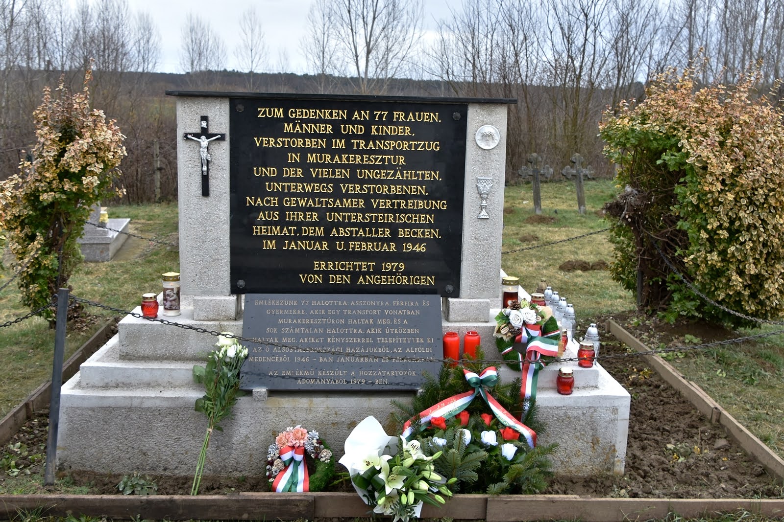 1946 januárjában megkezdődött a jugoszláviai, közelebbről szlovéniai stájerek kitelepítése Ausztriába. A jugoszláv hatóságok a saját vasútvonaluk rongáltságára hivatkozva Magyarországon keresztül kívánták kitelepíteni a több ezer őshonos stájert Bécsbe. Több szerelvény át is jutott a magyar vonalakon Ausztriába, de az utolsó vonatot ezernél is több emberrel visszaküldték Magyarországra, de a jugoszlávok nem akarták visszafogadni az általuk kitelepítetteket. Emiatt hetekig vesztegelt a szerelvény a murakeresztúri vasúti határállomáson, miközben a vonaton vérhas- és tífuszjárvány tört ki a fűtés nélküli vagonokban étlen-szomjan tengődő deportáltak között. A vonat végül beléphetett Jugoszláviába, de időközben 77-en meghaltak a nélkülözések közepette, akiket a murakeresztúri temetőben helyeztek közös sírba 1946. február 11-én.