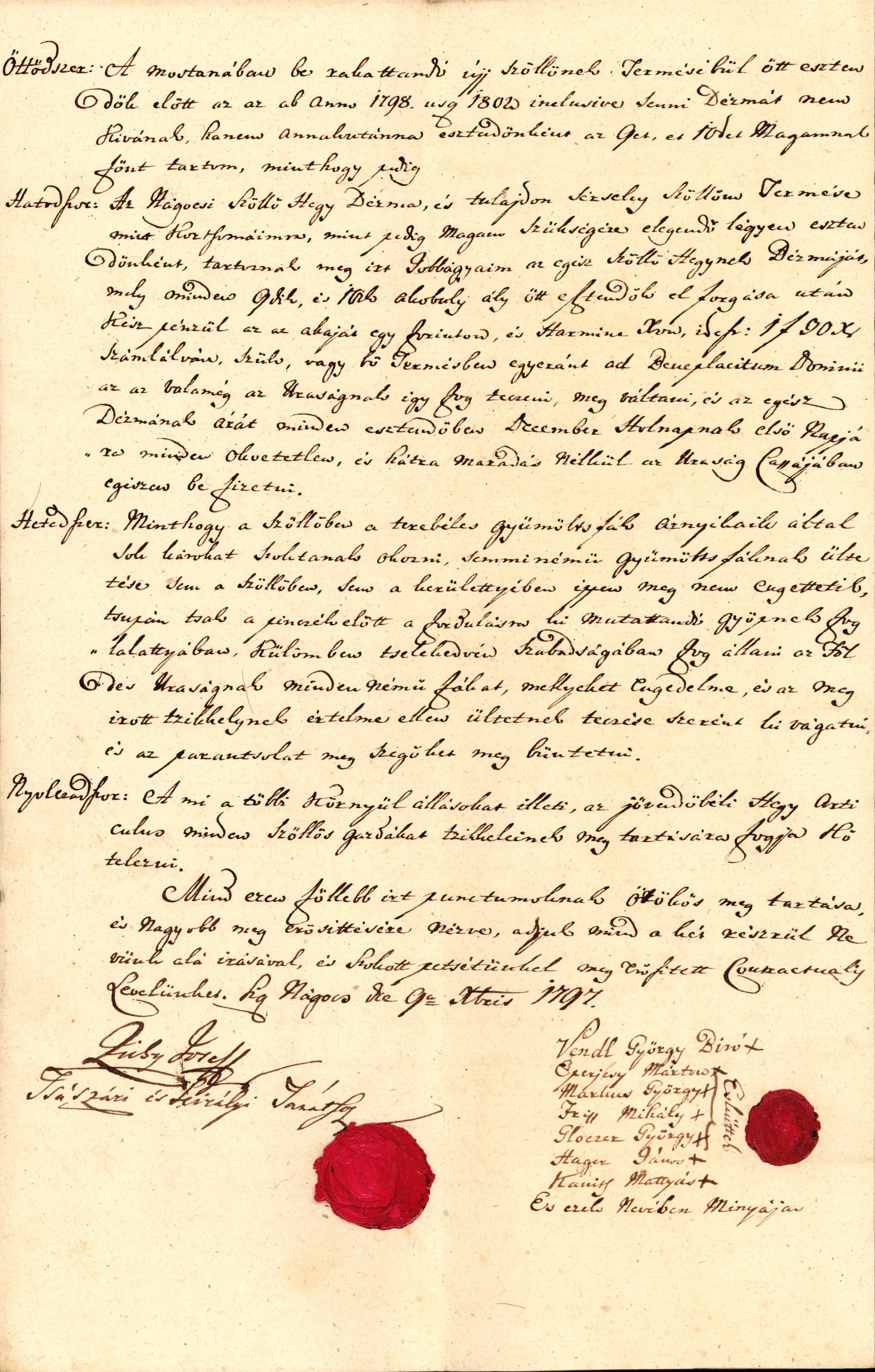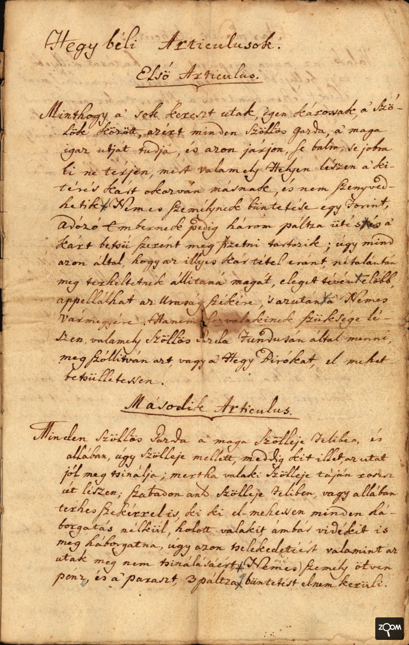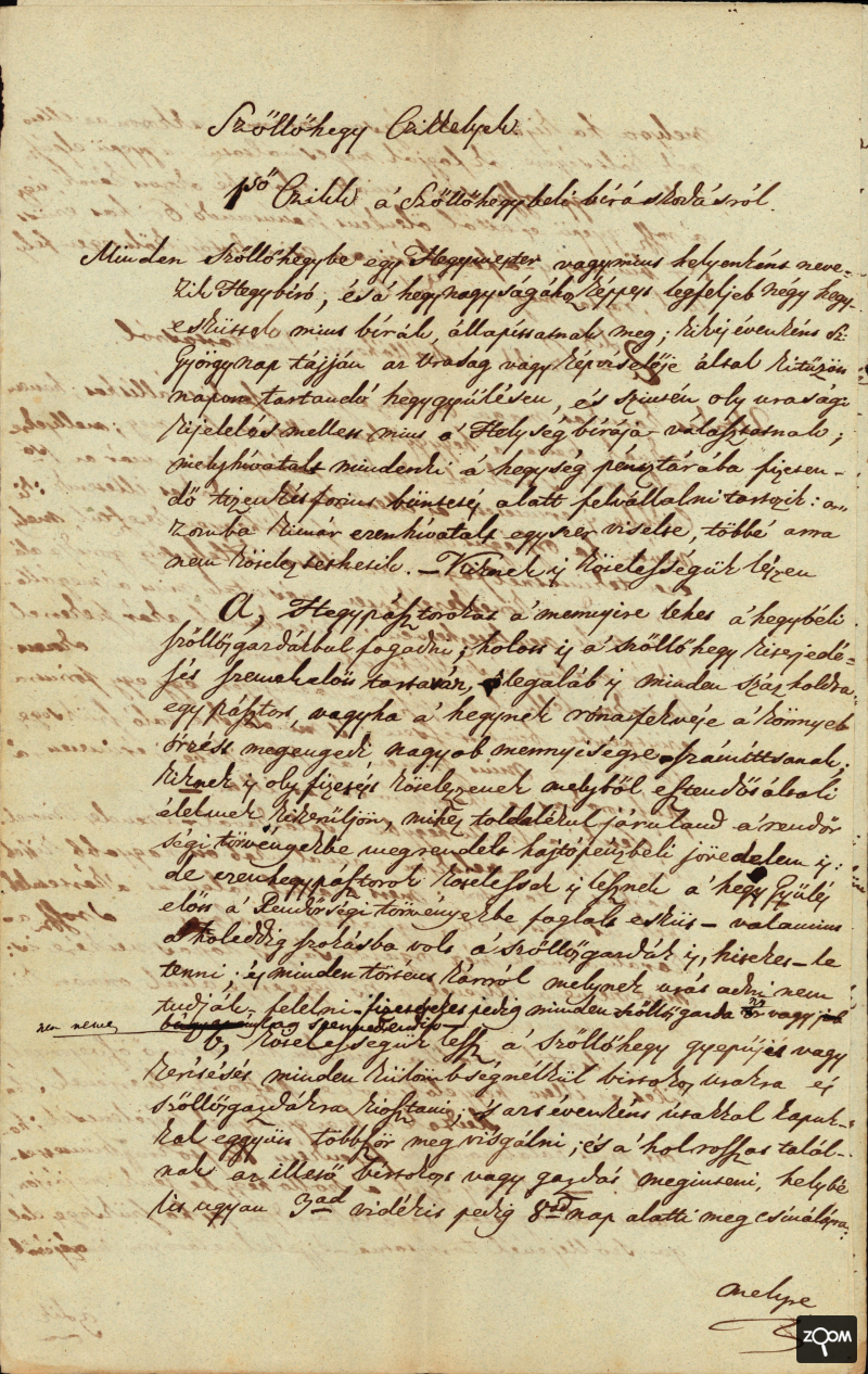 A kiállításhoz csak az MNL Somogy Vámegyei Levéltárában fellelhető statútumokból, szőlőtelepítési szerződésekből és hegygyűlési jegyzőkönyvekből válogattunk.