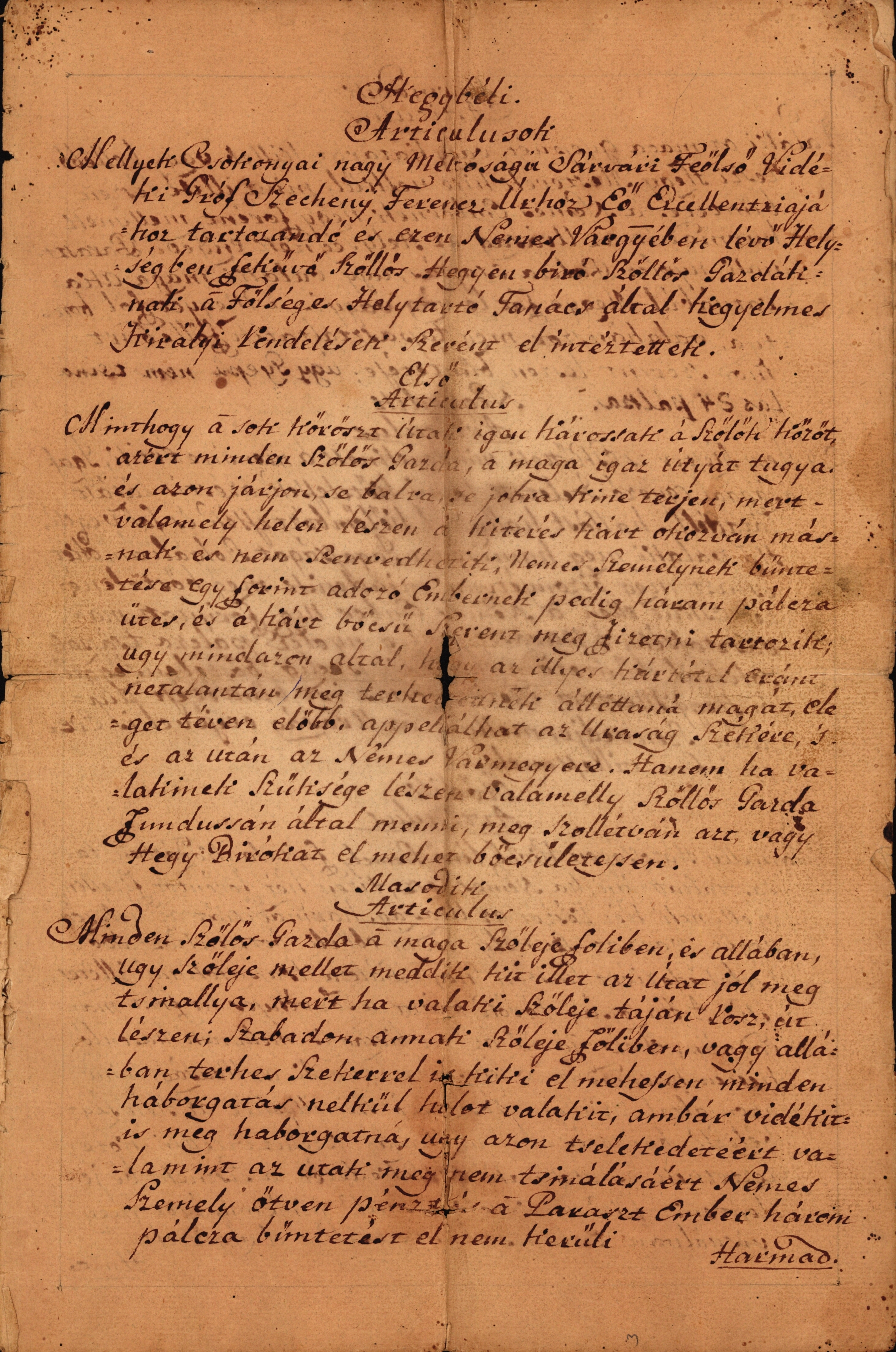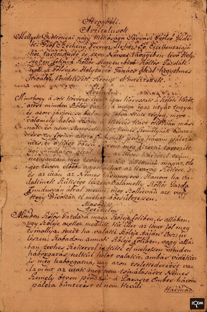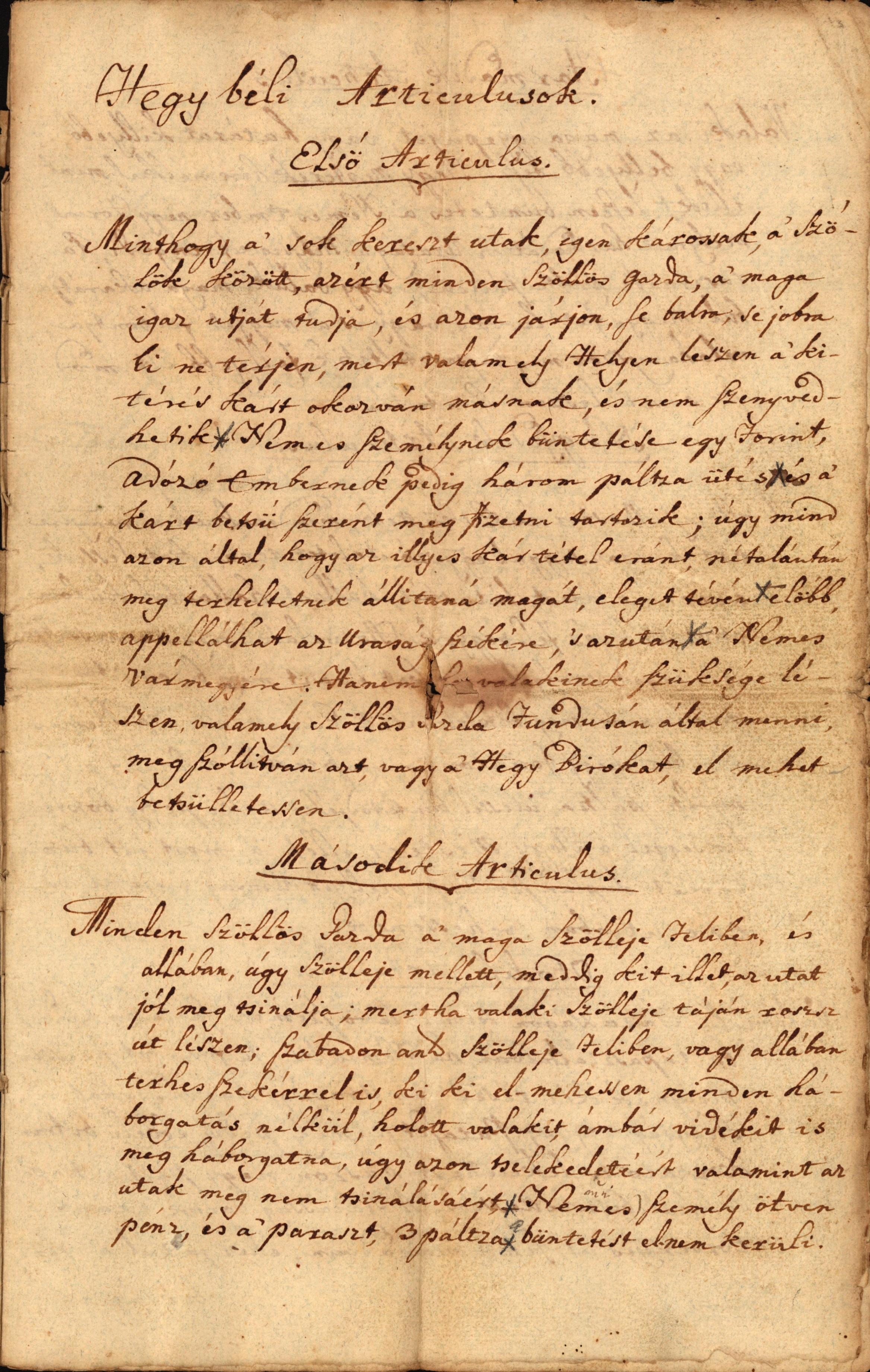 A kiállításhoz csak az MNL Somogy Vámegyei Levéltárában fellelhető statútumokból, szőlőtelepítési szerződésekből és hegygyűlési jegyzőkönyvekből válogattunk.