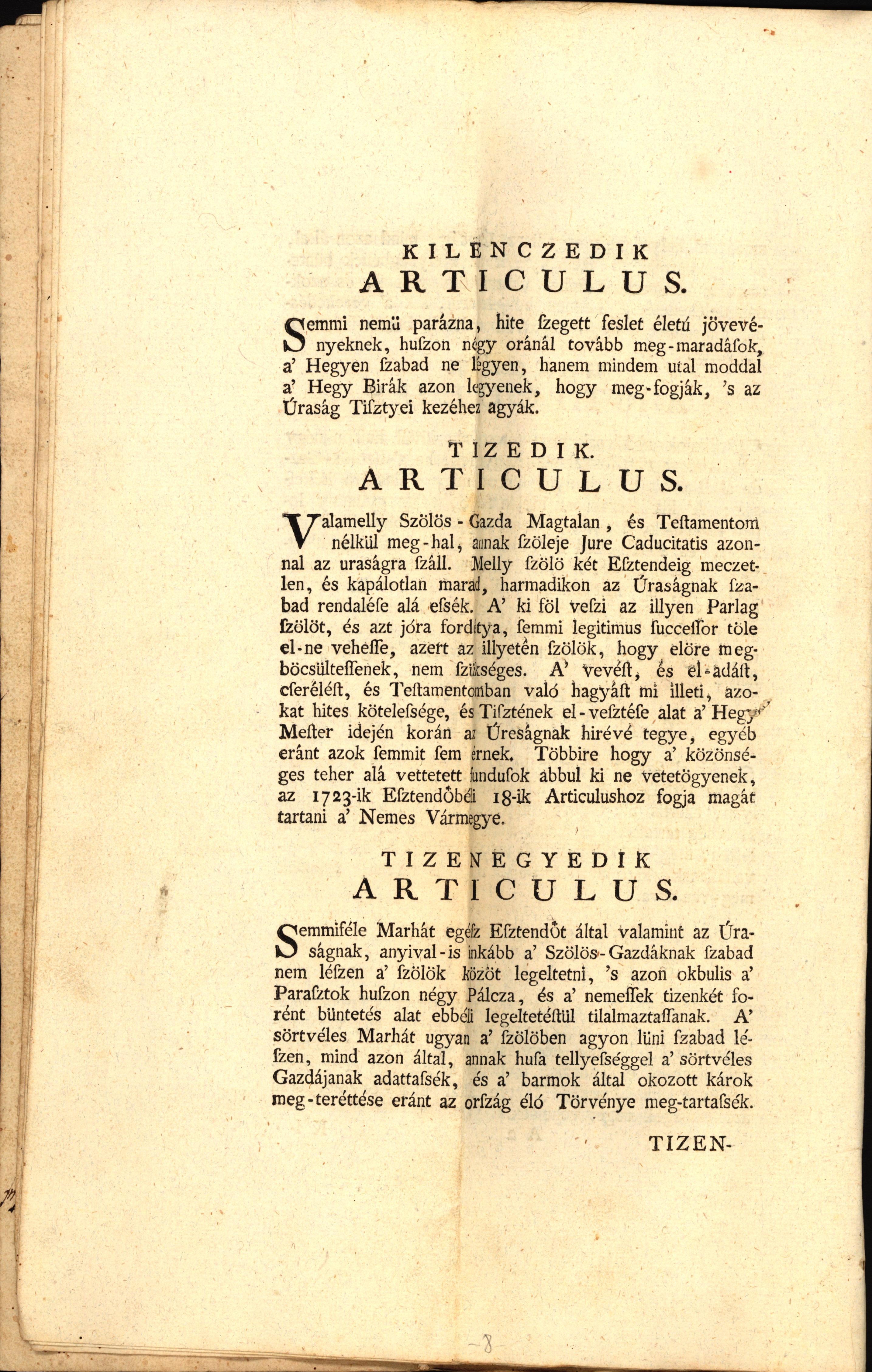 Somogy vármegye szőlő- és gyümölcstermesztése középkori eredetű, ezt bizonyítja az 1498-as megyecímerbe került jelkép, a három szőlőágat markoló páncélos jobb kar is. A török hódoltáság időszaka előtt is folyt a térségben szőlőművelés, azonban az elszórt adatokon kívül kevés levéltári forrással rendelkezünk e korból. A török háborúk, a rácdúlás és a Rákóczi-szabadságharc eseményei után kialakult békés viszonyok újból lehetőséget adtak a békés gazdálkodásra, illetve szőlőtermesztésre. Ezt szolgálta az is, hogy az 1730-as évektől stabilabb birtokviszonyok jöttek létre a vármegye területén élő nagybirtokos főúri családoknál. A 18. század első szőlőhegyi vonatkozású iratai is e családok: a Zichy, Festetics, Széchényi és Esterházy levéltáraiból kerültek elő. Ezek a korai telepítési szerződések is azt bizonyítják, hogy fontos volt a háború sújtotta vidék mezőgazdasági termelésének újraindítása. A Dunántúlon működő szőlőhegyi közösségek − korabeli szóhasználattal élve – helységek, hegyek önállóan, saját beligazgatással működtek. Egy-egy szőlőhegy birtokos társadalma több falu vagy mezőváros lakóiból került ki, a szőlőhegy birtokosai önálló közösséget alkottak. Ezek a közösségek, földesurukkal egyeztetve az 1740-es évektől a szőlőhegyi mezőgazdasági termelést (nemcsak borkészítést, hanem zöldség- és gyümölcstermesztést, valamint a pálinkafőzést), a szőlőhegyi önkormányzat működését és a szőlőhegyben követendő magatartást szabályrendeletekkel, korabeli szóval statútumokkal foglalták keretbe. Ezek a korai szabályrendeletek az ezt egységesen rendező 1776. évi vármegyei statútum megszületéséig egyediek voltak. A kiállítás anyagából is látszik, hogy azon szőlőhegyek amelyek 1776 után a vármegyéhez fordultak statútumért, általában a vármegye kőnyomatos példányának az adott szőlőhegyre vonatkozó aktualizált változatát kapták. Vannak kézzel átírt példányok is, de a törzsszöveg még a reformkorban is az 1776. évi vármegyei statútumon alapult. Ezek a szabályrendeletek az 1860-as évek végéig érvényben voltak.